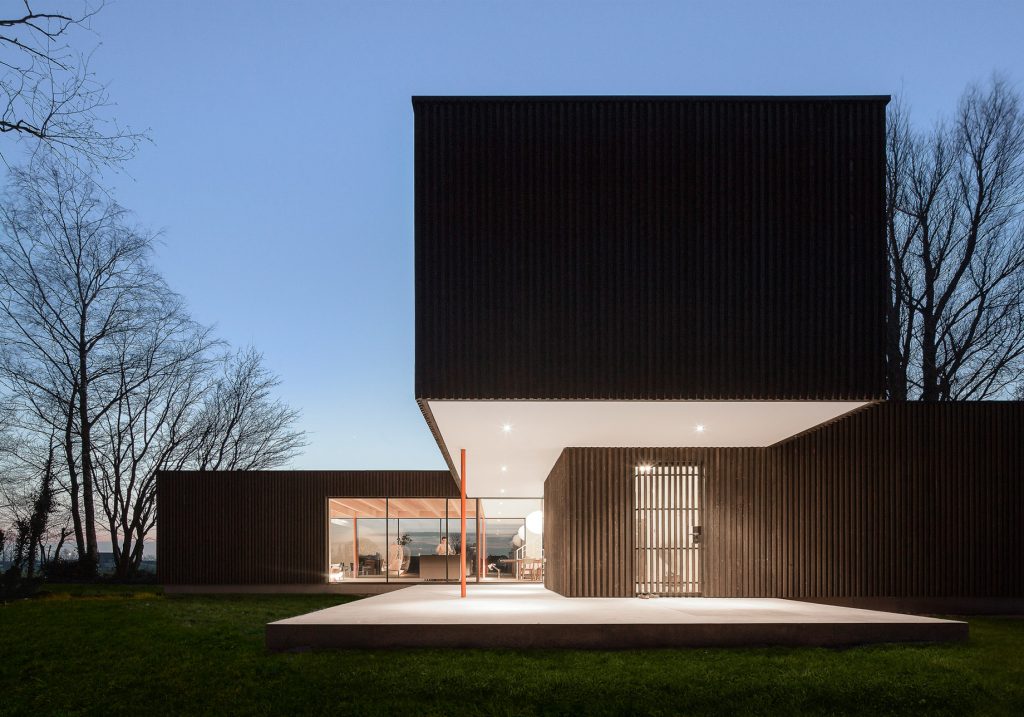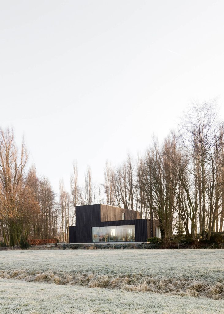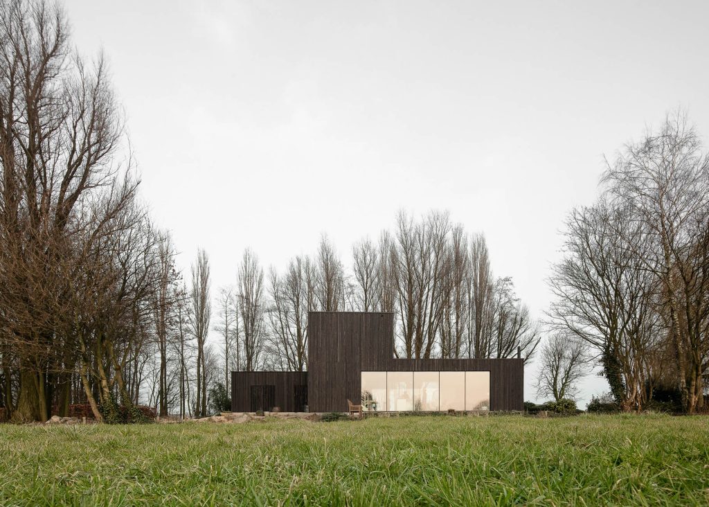In the Dutch municipality of Duiven, a devastating fire reduced a centuries-old farmhouse to little more than scorched earth and a few retaining walls. From this tragedy emerged an opportunity to reimagine the family’s home from the ground up. The owners, alongside Finnish architects Studio Puisto and Bas van Bolderen Architectuur, chose to forego a replication of the historic structure, opting instead for a contemporary design that prioritizes connection with the surrounding landscape. The result is a striking, dark-stained larch-clad timder home, organized into three distinct wings that radiate in different directions, each engaging with the natural environment in a unique way.