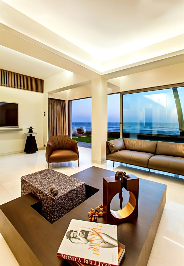 Belonging to a progressive and well-travelled Indian couple, this property was created to realize a contemporary luxury home that could be visually and seamlessly connected to the ocean, while integrating indoor and outdoor spaces to take advantage of the abundant natural light and serene coastal sea breezes.