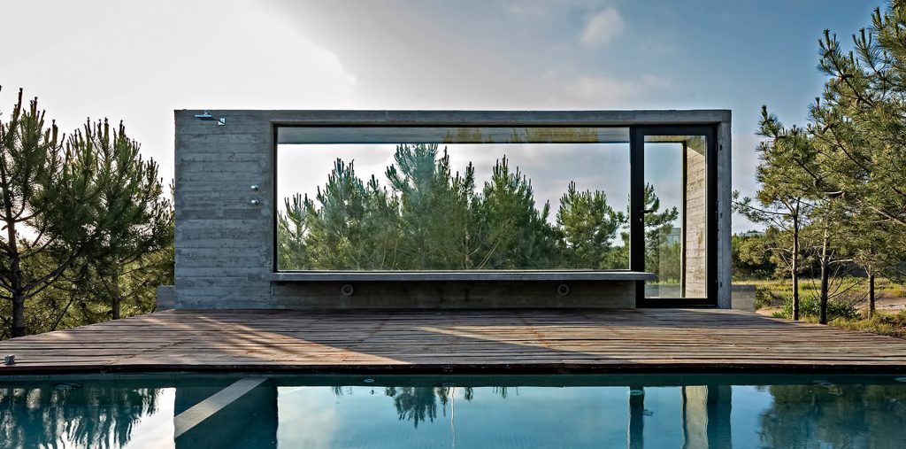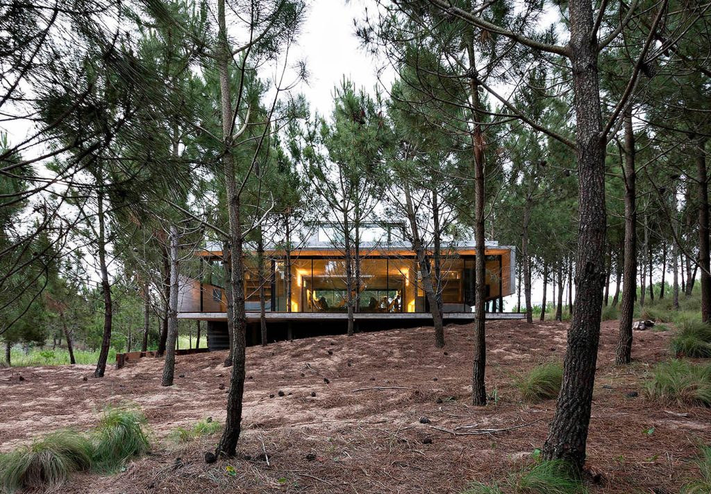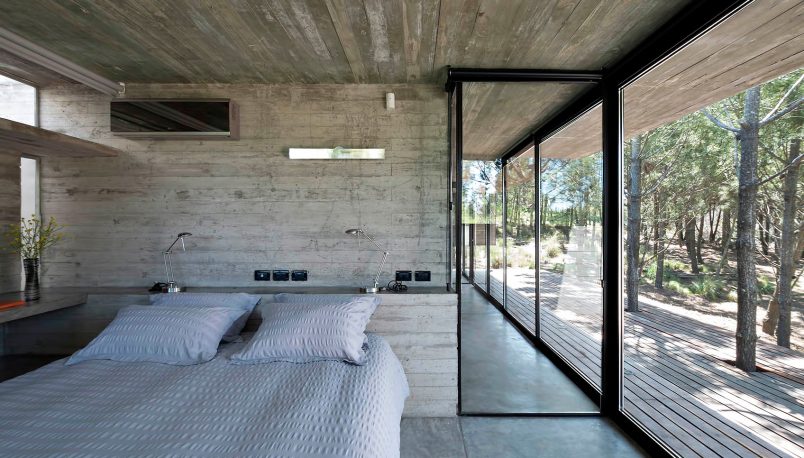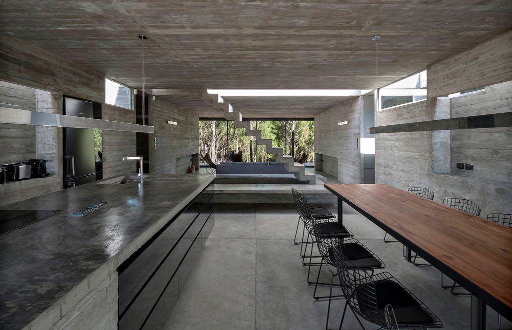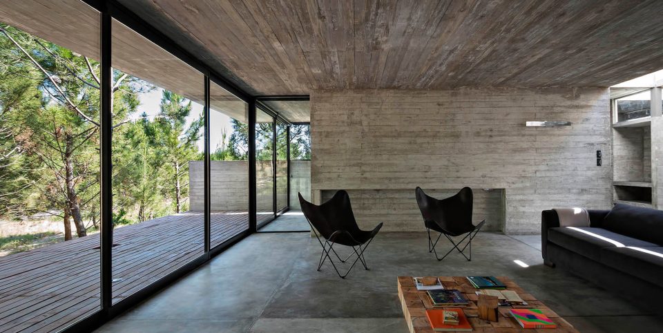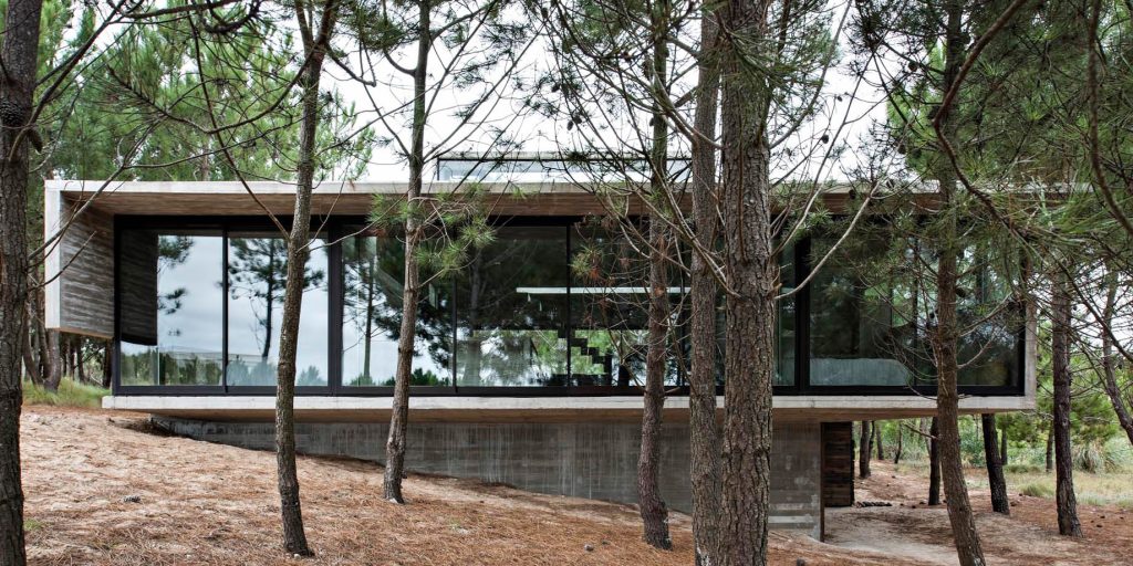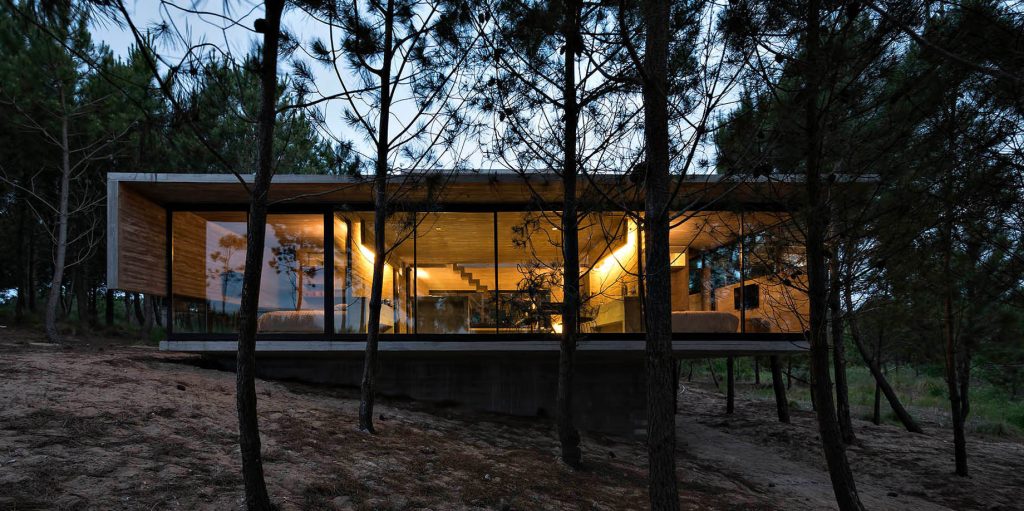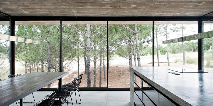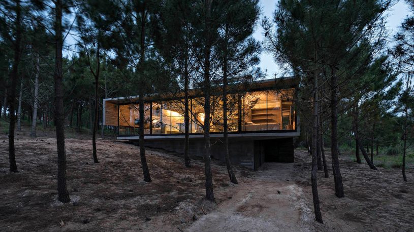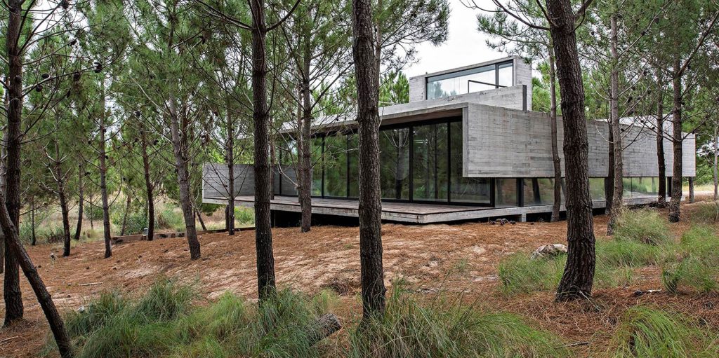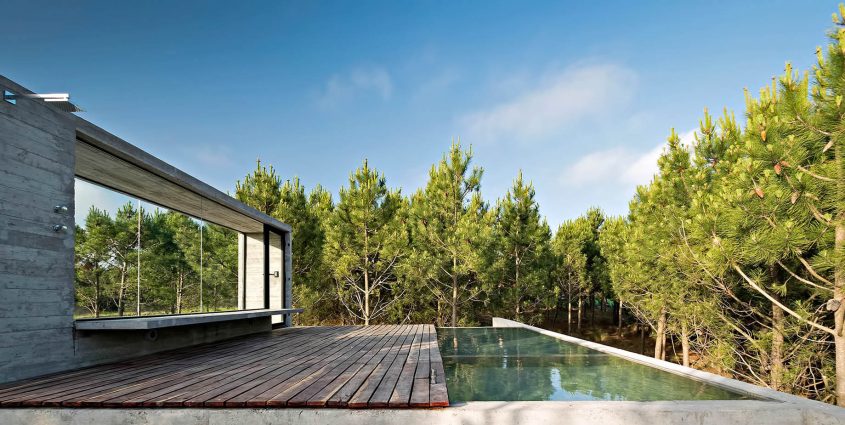 Cast in place as a monolithic sculpture of concrete and glass, the L4 house is a luxury holiday residence set within Costa Esmeralda in Argentina amid a lush virgin coastal landscape of pine trees and sand dunes that resolutely admire sensational sea views embraced by crystal blue skies. The striking residence was dramatically architected as a suspended box with large concrete slabs that form the autonomous material elements of the structure while, at the same time, expressing a poetic intimate harmony of place within the topography of the setting.