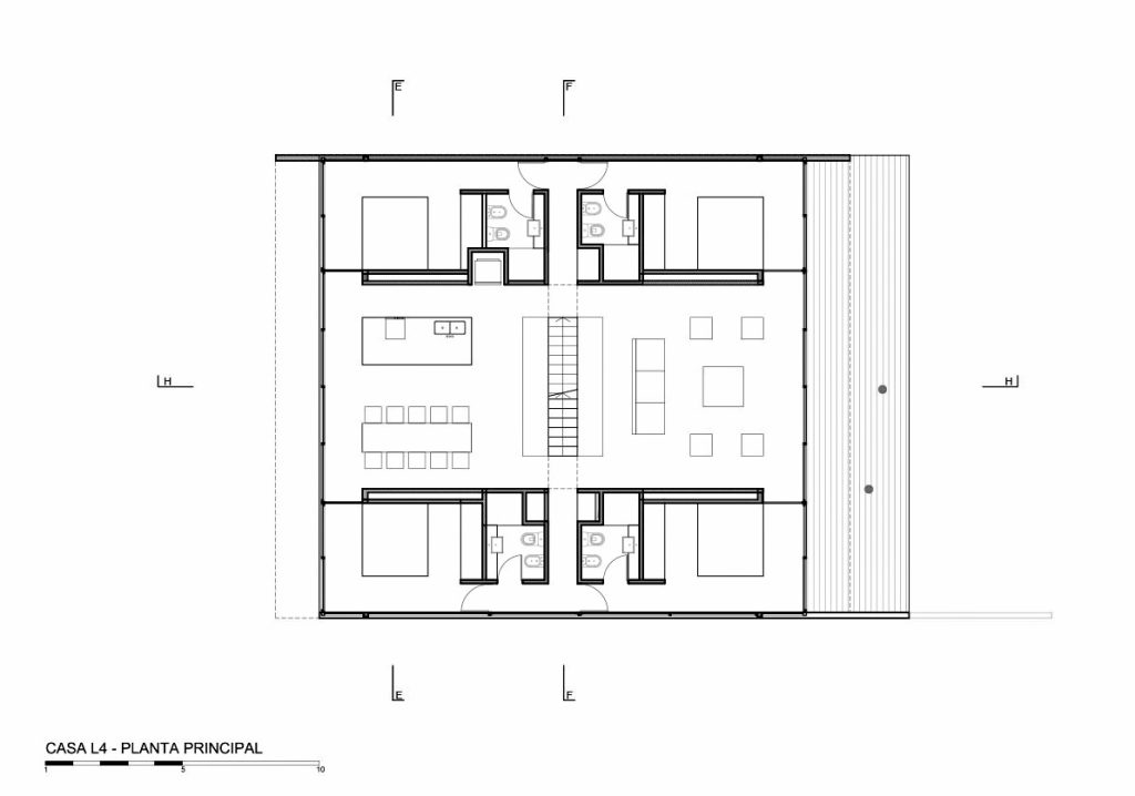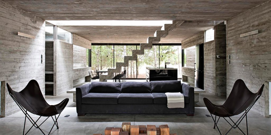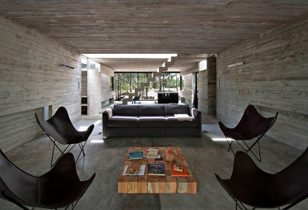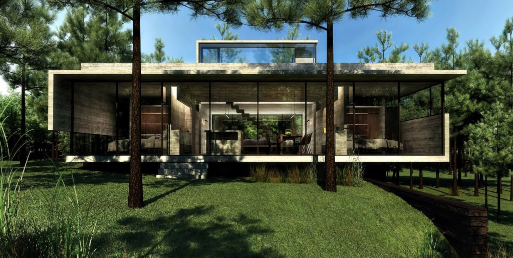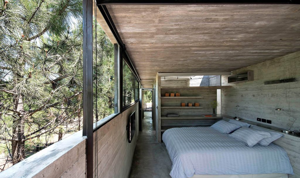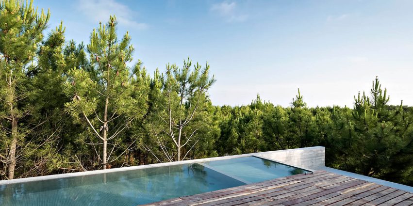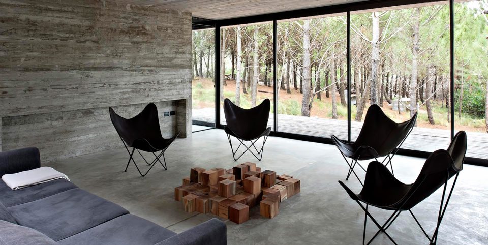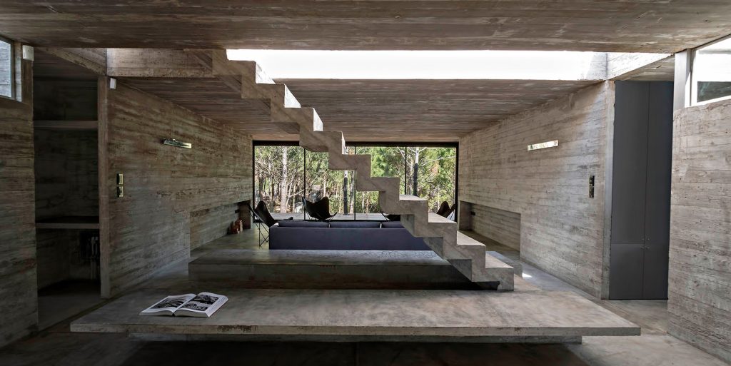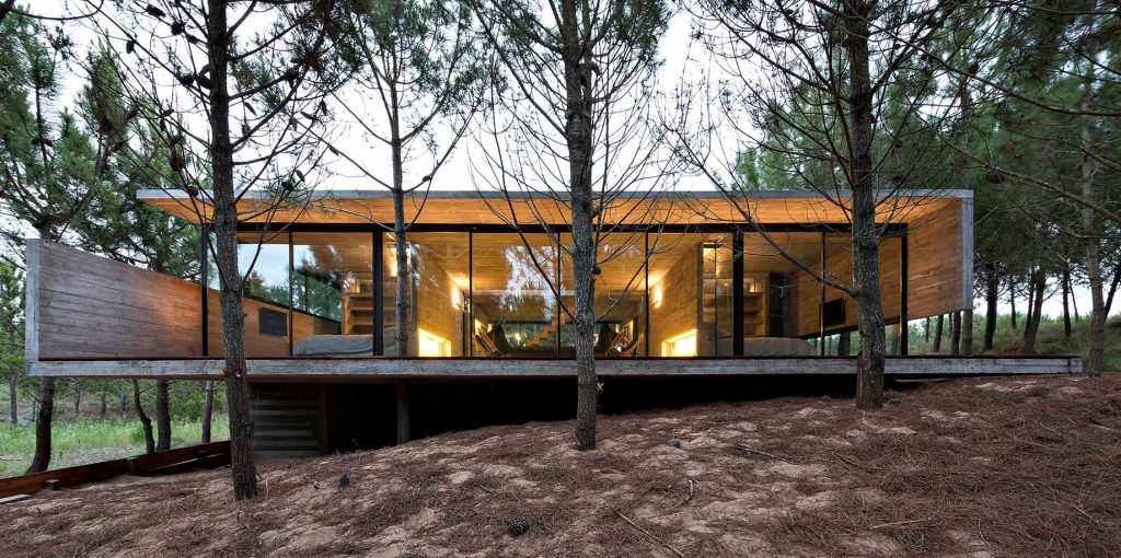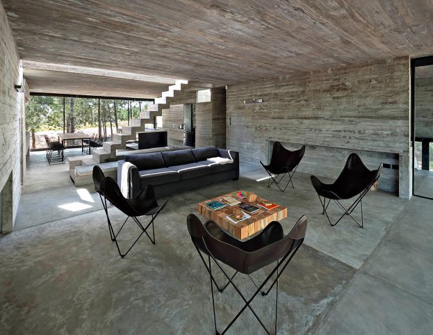 Cast in place as a monolithic sculpture of concrete and glass, the L4 house is a luxury holiday residence set within Costa Esmeralda in Argentina amid a lush virgin coastal landscape of pine trees and sand dunes that resolutely admire sensational sea views embraced by crystal blue skies. The striking residence was dramatically architected as a suspended box with large concrete slabs that form the autonomous material elements of the structure while, at the same time, expressing a poetic intimate harmony of place within the topography of the setting.