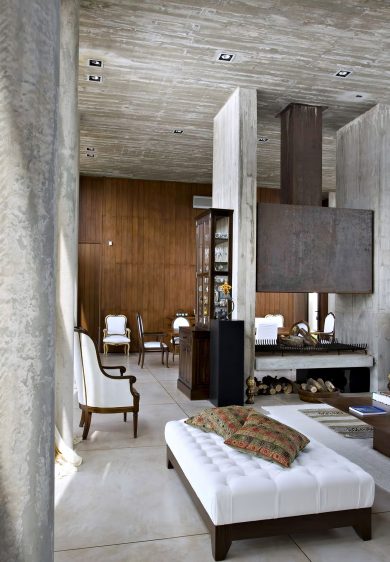 The outdoor gallerias that surround these concrete blocks of the residence end up creating the idea of outdoor living spaces that creates a fluid transition between the interior and the exterior with the omnipresent panoramic view of the Ocean just beyond the sands of the beach.
