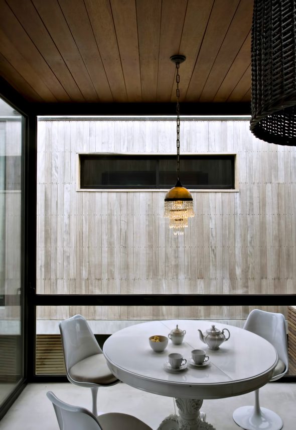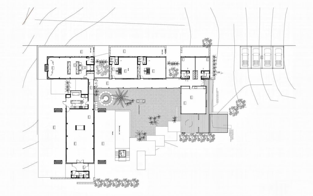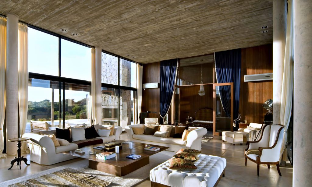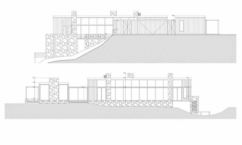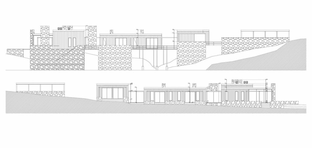 The home consists of five blocks, which contains a main block with a living and dining area with the best views to the sea and its swimming pool, which is completely protected from the wind placed in the center of the structure. The other blocks contain a service area and other guest room blocks. The independence and separation of the living areas was crucial for delivering the ambiance of being away from the busy world at the seaside.