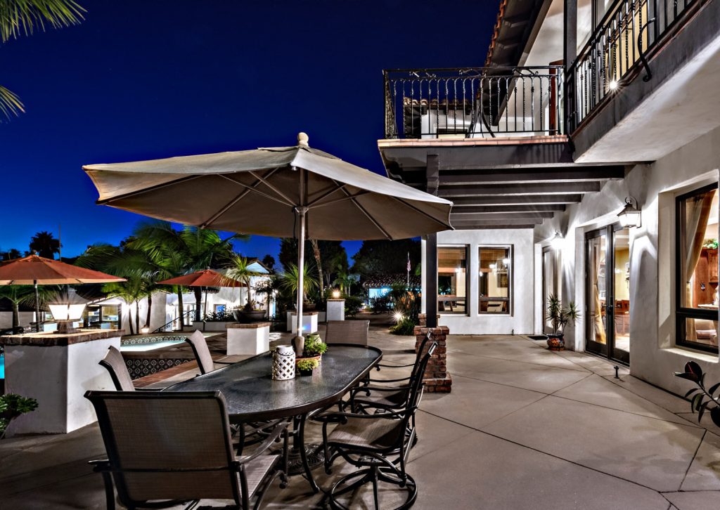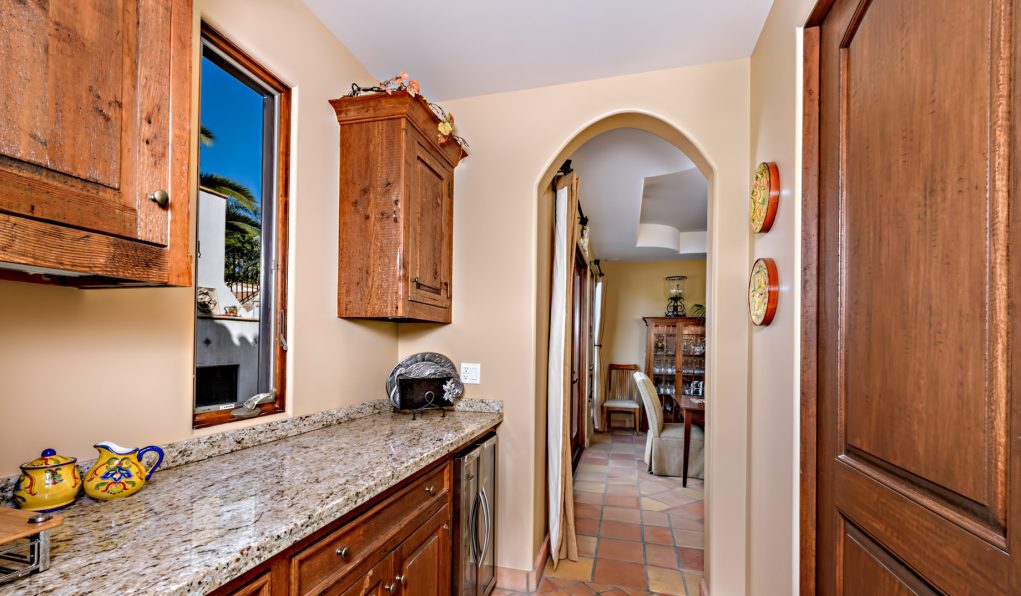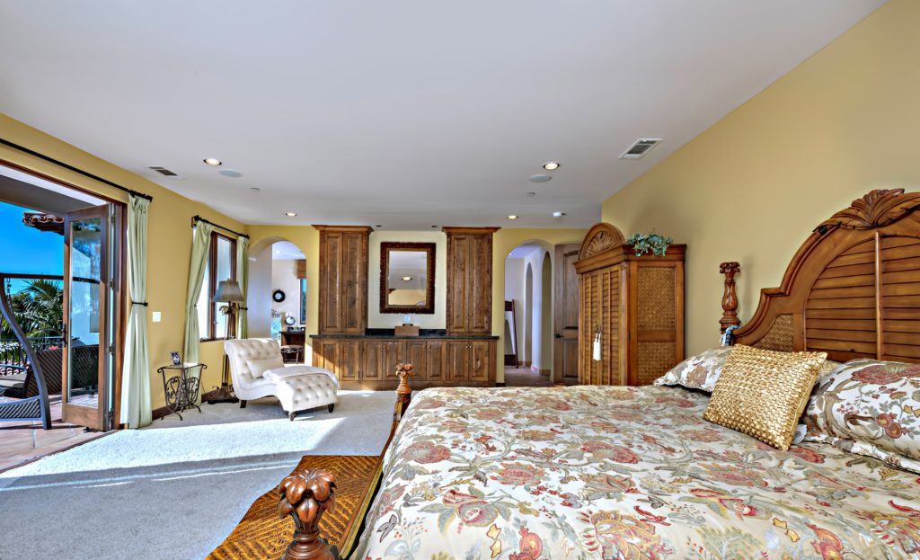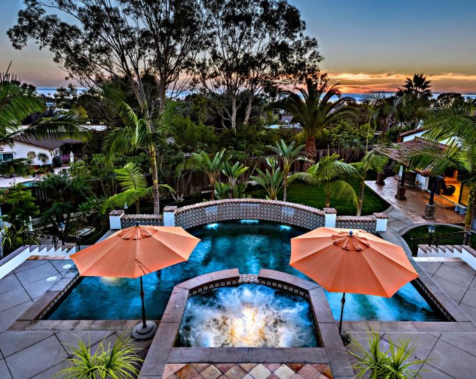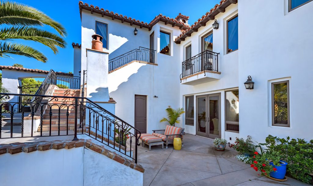 The luxurious San Clemente compound offers privacy and views on an immaculate oversized landscaped lot. The main home has 5 ensuite bedrooms, an oversized eat-in chef kitchen, two in home offices, 3 interior fireplaces a guest retreat with kitchen area and private access. Ocean View master retreat has private patio, sitting area, jetted soaking tub, multi-person steam shower, bidet, and two large walk-in closets. The master wing has an additional bed/bath attached ideal for a nursery or gym space. The kitchen offers professional grade appliances, a large farmhouse sink, two large granite kitchen islands, breakfast bar, eat in dining, custom shaker cabinetry and master craftsman detailing. A butler’s pantry area with walk in pantry and China storage connects the kitchen with the formal dining area. The main floor has a convenient bedroom suite. There are 7 total patio spaces off of the main home, 2 with outdoor fireplaces. Heirloom quality woods frame the many French doors creating excellent flow between indoors and out.