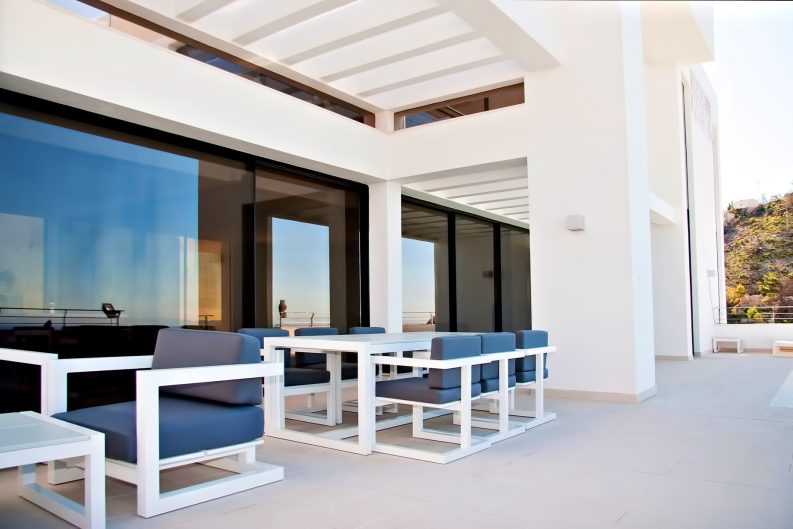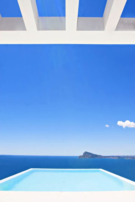 The vitality of the interior spaces are embraced by large sliding glass areas allowing the majestic exterior views to permeate throughout the residence. You are immersed in the experience of rising above the world as you peer through the windows. The open flowing interior unites with terraces and pool bringing you closer to the glorious natural setting on top of the Toix-Mascarat urbanization. Residents enjoy incomparable views towards the south, with a panoramic view of the Bay of Altea and out across the Mediterranean Sea.
