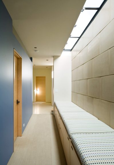 As two intersecting masses converge, the architectural vision unfolds to maximize a seamless blend with the wooded natural landscape. Every aspect of the design is meticulously orchestrated to create a visual symphony that not only complements the lush surroundings but also establishes an intimate connection with the lake below. This residence stands as a testament to the architects’ ingenuity in transforming the challenges posed by the difficult site into opportunities for innovation. The resulting structure not only captures the essence of contemporary living but also exemplifies a symbiotic relationship between form and function.