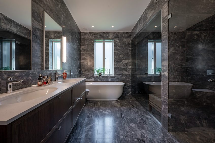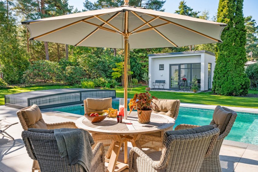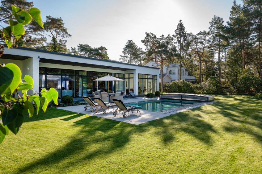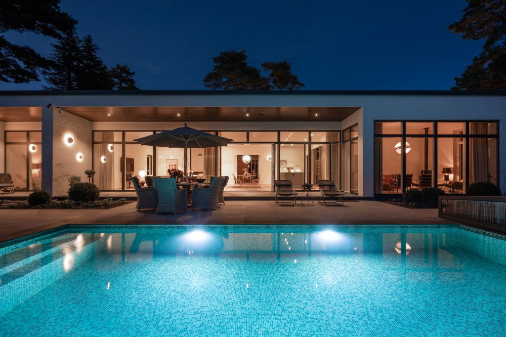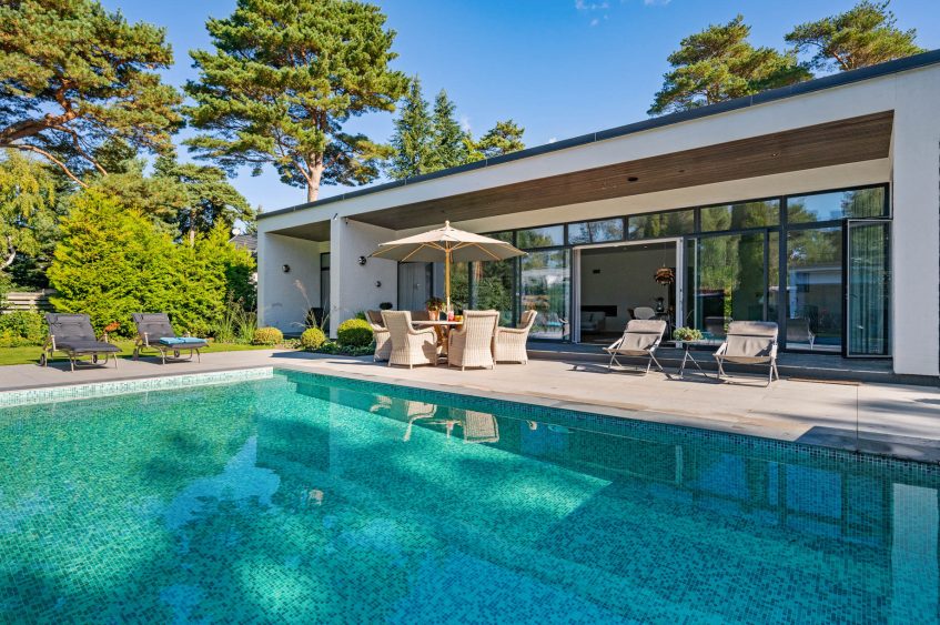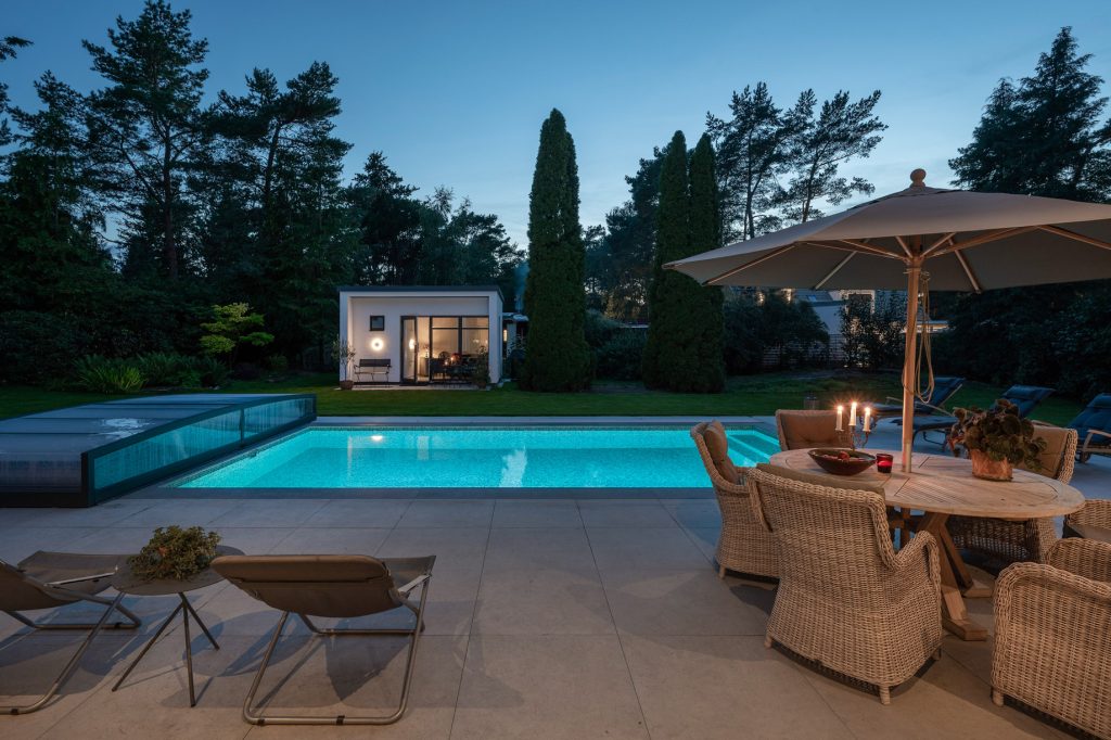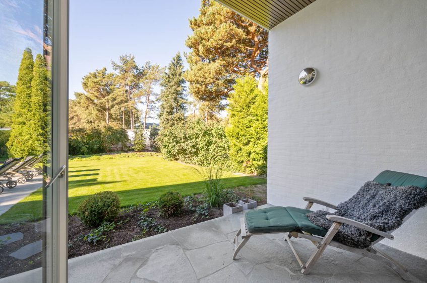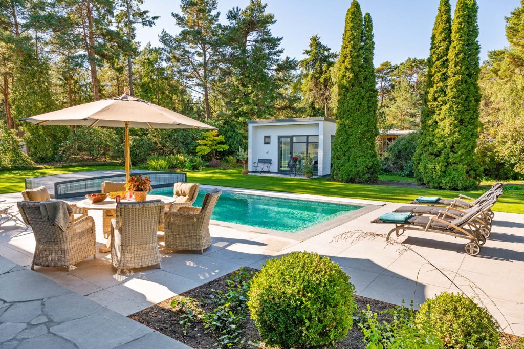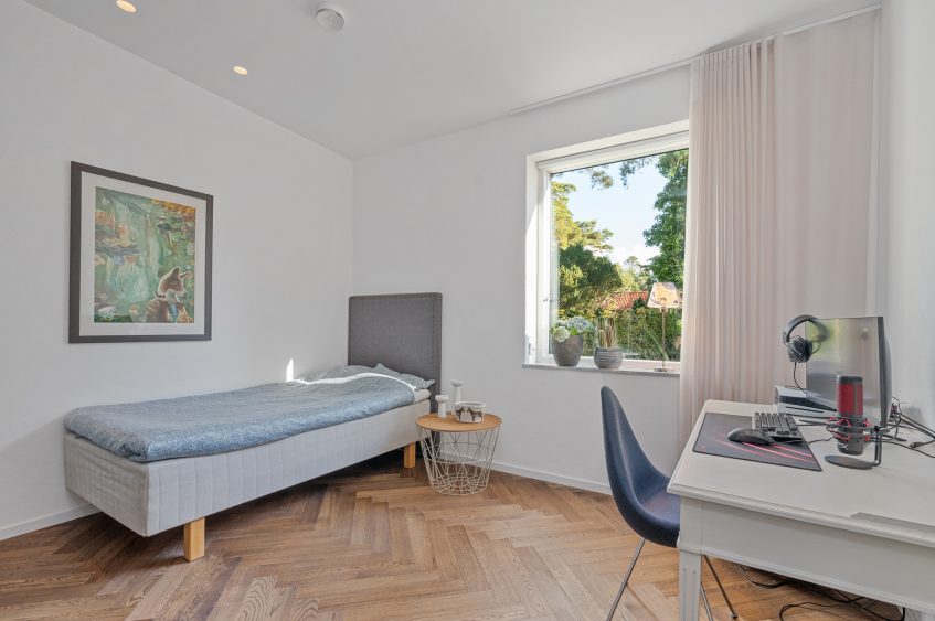 The outdoor environment is just as impressive as the interior of the home. The plot of 1,780 square meters is filled with beautiful vegetation, including rhododendrons, lilac trees, hornbeam hedges, and boxwood. The large slate/granite terrace and inviting pool area provide ample space for outdoor entertainment. The pool, which is covered in mosaic and measures 8×4 meters, is fully cast and comes with a pool house that includes a technical room, a toilet, and preparations for a kitchenette. This sensational contemporary dream home in Ljunghusen is truly exceptional and is sure to impress even the most discerning luxury aficionado.