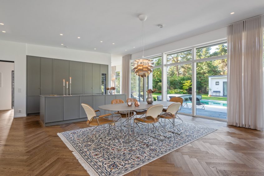 This stunning dream home located in Ljunghusen boasts approximately 226 square meters of luxurious living space that has been designed to the highest standard, both inside and out. The elegant kitchen from Kvänum, with top-of-the-line machinery from Bora and Gaggenau, is a standout feature that is sure to impress. The beautiful herringbone parquet flooring creates a warm and inviting atmosphere, while the orangery is the perfect spot for hosting gatherings. The sedum roof is just one of the many unique features that make this home truly exceptional.