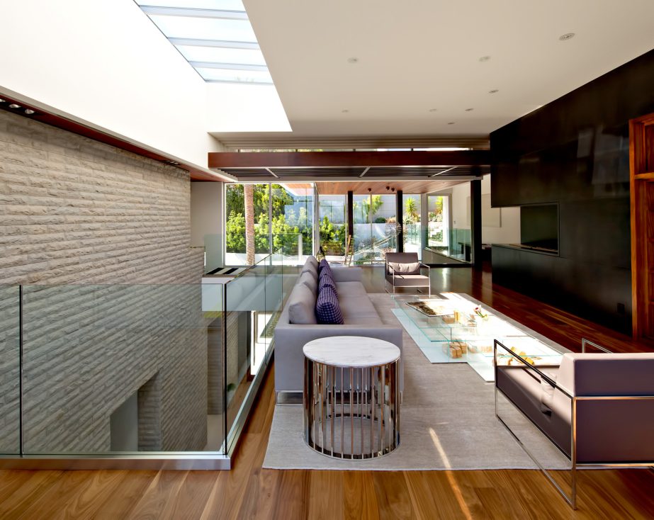 To journey beyond the grand gates and soaring pepper tree hedge of this Hagy Belzberg-designed compound estate is to enter a secluded, resort-like sanctuary where three distinct structures, a Main Residence, Wellness Center and Guest House that summon you forward, beckoning you to journey through their space so they can unveil one surprise after another. Architecturally inspiring, in both appearance and function, 1232 Sunset Plaza radiates a warm, California modern allure draped in sophistication and delight, while conveying an unmistakable sense of strength, volume and boldness. Exterior and interior transitional spaces are rich in fluidity so that the capacity to enjoy and entertain is always sensible and effortless.