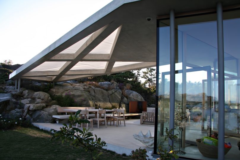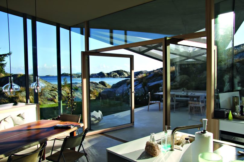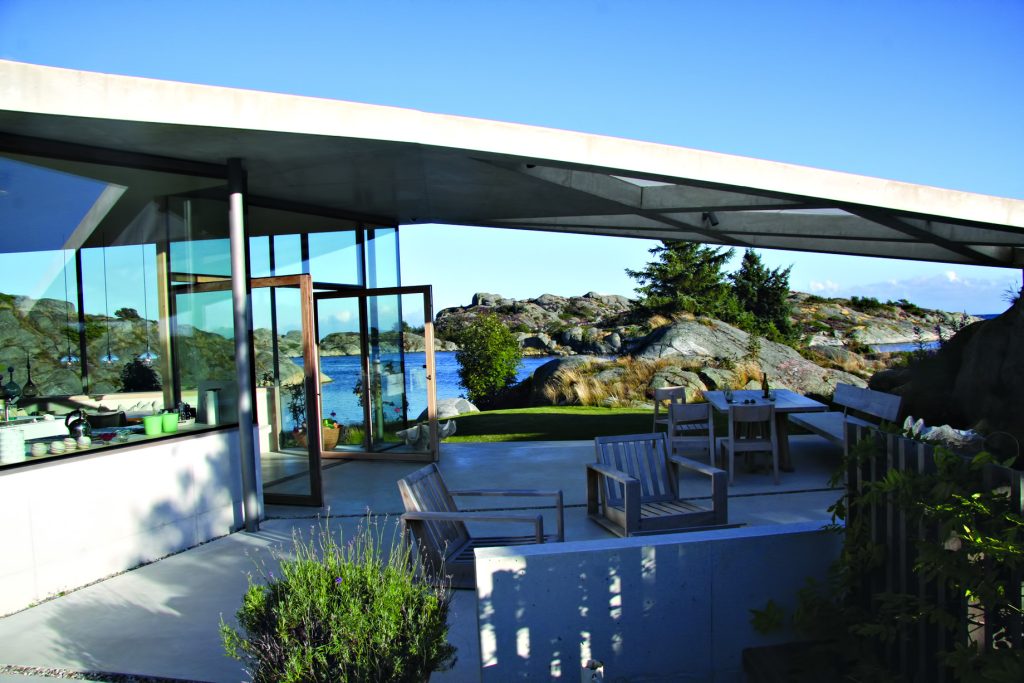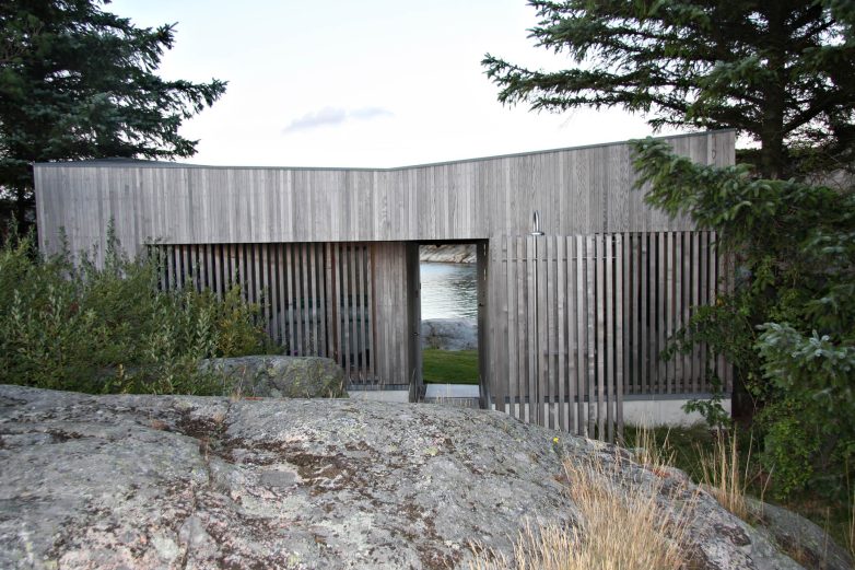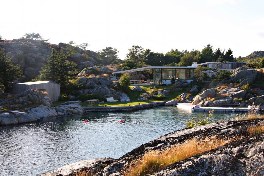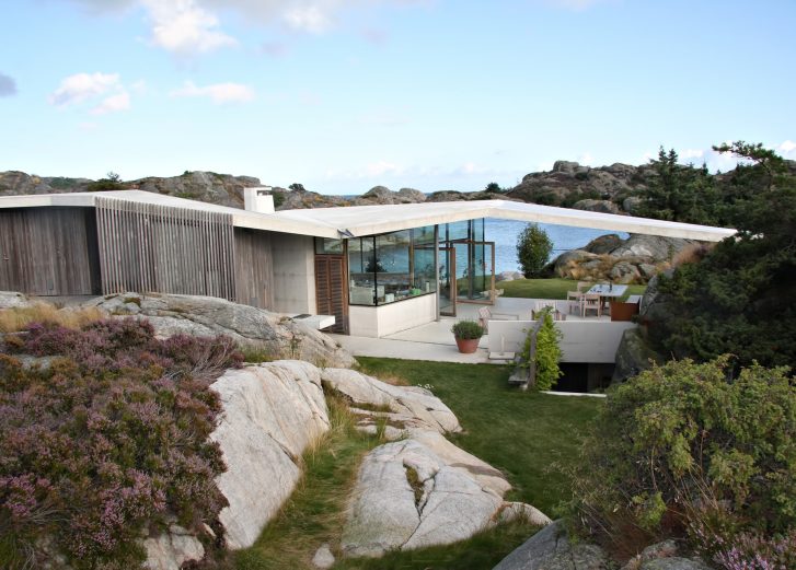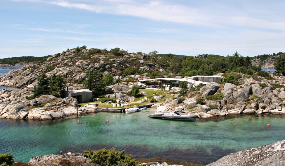 The ultimate seaside retreat, this exceptional Summer House is located on Lyngholmen, an island in the archipelago in Agder on the South coast of Norway. The site is situated on the threshold between the rocky landscape and the ocean. The site is sloping down towards to the south, and it has magnificent ocean views. The site is also naturally sheltered from wind by the existing vegetation and rocks, yet it opens up to the evening sun.
