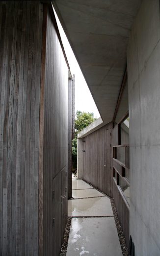 The key feature of the house is the roof that bridges across the existing rocks. It does not only shelter the immediate outdoor space from wind but also articulates the view towards the ocean from the house. The roof structure mediates the threshold between inside and outside and unifying between the nature and the building. Articulating and redefining the immediate landscape was considered important in this project. A new path was created from the house to the beach and a new jetty placed carefully without minimum disruption to the landscape.