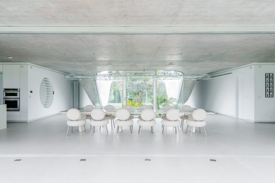 “Indirect, lighting throughout the house is placed at the top and bottom edges of walls to separate architectural elements and to light the concrete slab from the bottom.” – added Escudero