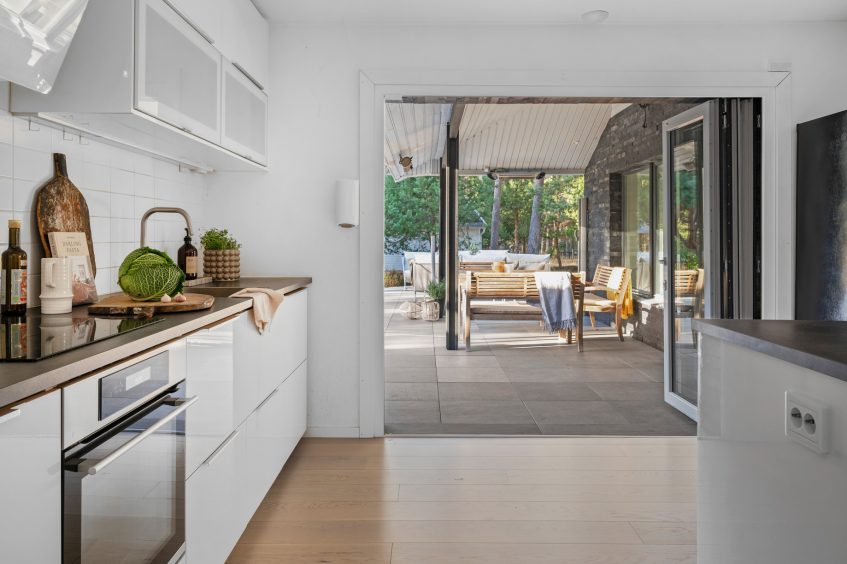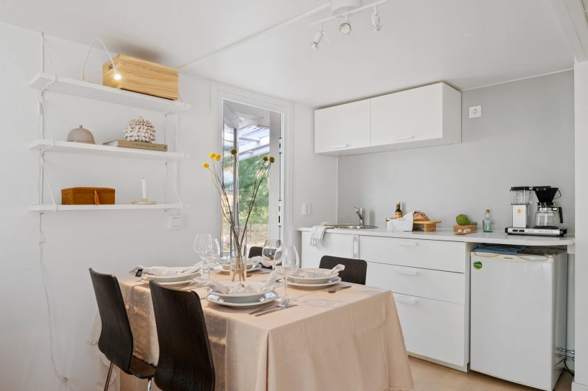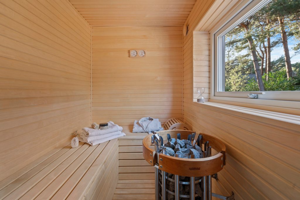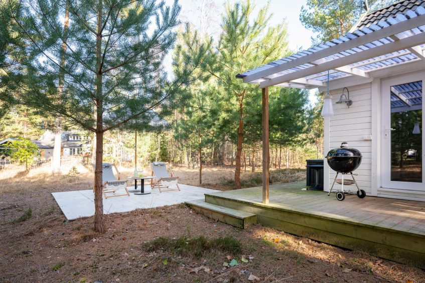 Located in the prime spot on a scenic plot, this bright home offers several charming patios, both covered and uncovered, allowing easy access to the lovely outdoor environment from multiple rooms. The lush plantings, including heather, rhododendron, and pine, seamlessly blend with the lawn, creating the perfect backdrop for socializing and relaxation. Additionally, the property features a separate guest house complete with its own parking and patio. The guest house includes a living room, kitchenette, sleeping loft, and bathroom, making it an ideal rental unit. A storage shed is also available on the property. The various terraces provide ample space for dining furniture, lounge groups, and deckchairs, with the goal of preserving the natural beauty of the site. Ljunghusen is renowned for its stunning nature, characterized by beautiful pines and heather, making this property truly unique.