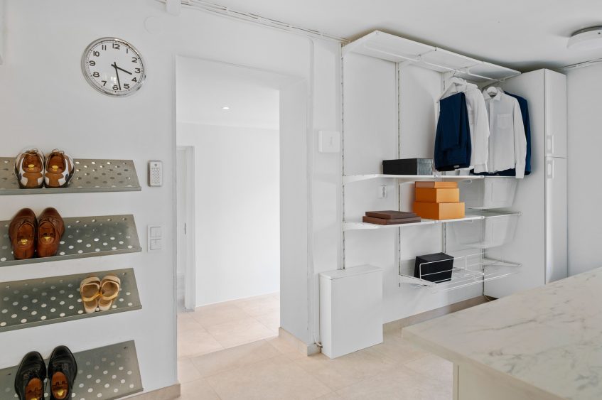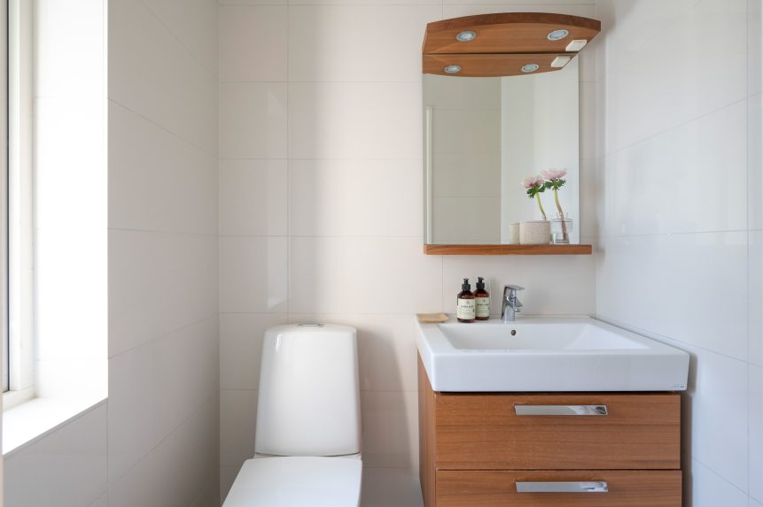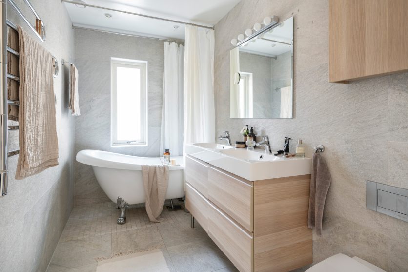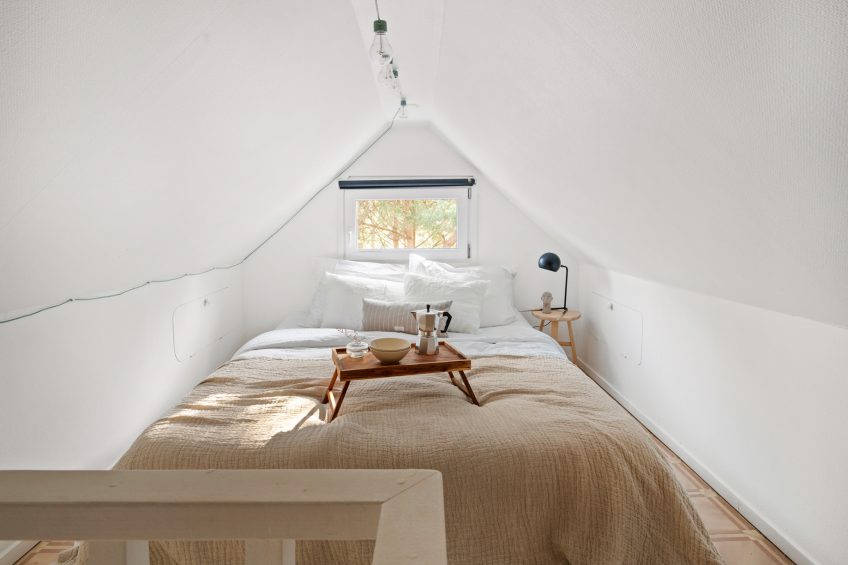 The spacious and inviting living room, with multiple light inlets and a terrace door leading to the lush garden, serves as the heart and focal point of this beautiful house. With ample space for multiple seating groups, it is an ideal place to host gatherings with friends and family. The house features a new Nordpeis Salzburg heat-storing stove with angled glass, adding to the charm and warmth of the living room. The large and stylishly furnished kitchen, courtesy of IKEA, provides ample cupboard storage with smooth, shiny white doors and a laminate worktop. An inviting bar counter is perfect for casual dining, while an adjacent dining area accommodates 6-8 people. The spacious master bedroom boasts a parquet floor, light walls, wardrobes, and ceiling spotlights, providing a comfortable and relaxing space.