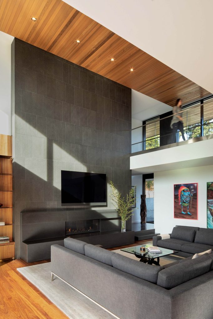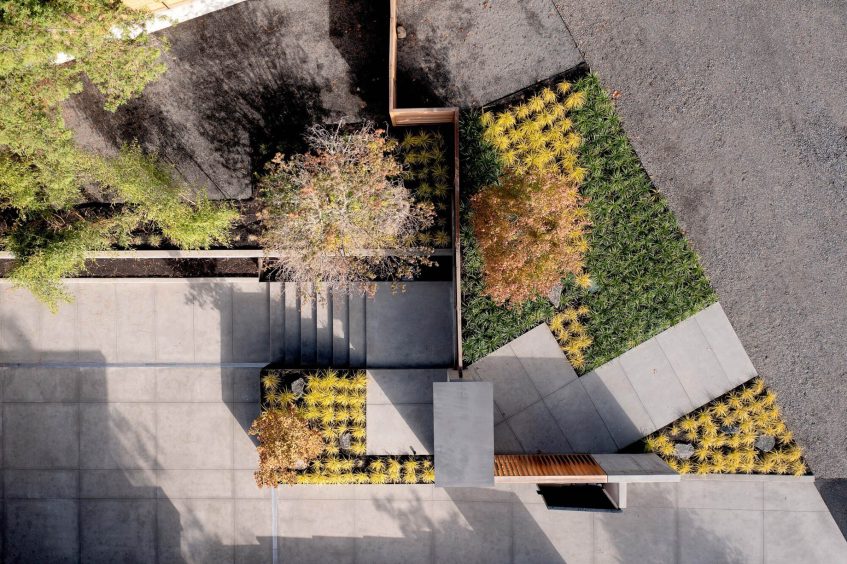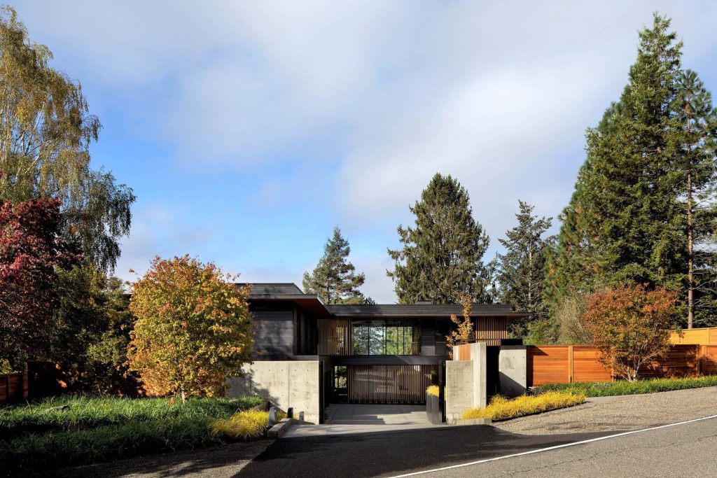 One of the initial challenges faced by the architects was the steep slope of the site. With a grade change exceeding 20 feet from the road to the opposite end, it was crucial to work with the existing topography while ensuring the clients’ preference of staying in their beloved neighborhood. Fortunately, the site offered breathtaking views of the Coastal Range and boasted several mature trees. To harmonize with the natural contours of the land, the house and landscape were carefully designed to step with the profile of the site, effectively mitigating the variations in height. The landscaping surrounding the residence not only acts as a functional element in addressing the grade changes but also adds to the overall aesthetic appeal of the design. Seamlessly transitioning between different levels, the carefully planned outdoor spaces serve as a picturesque backdrop to the home.