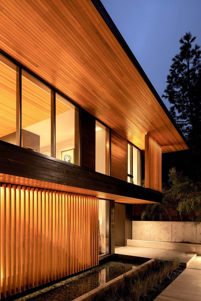 Externally, the Maple Rock Residence captivates with its contrasting elements and subtle references to Japanese aesthetics. Clad in western red cedar with a sophisticated black finish, the exterior exudes a moody elegance. Vertical warm-toned wood slats not only add visual interest but also provide privacy while still allowing ample natural light to filter into the living spaces, creating a harmonious blend of privacy and openness. The Maple Rock Residence seamlessly combines a gallery-like aesthetic, indoor-outdoor integration, and thoughtful design elements to create a home that fulfills the clients’ desire for a space to entertain and showcase their extensive art collection. With its stunning architecture, functional layout, and attention to detail, this contemporary masterpiece is a testament to SEA’s commitment to crafting extraordinary homes that cater to their clients’ unique lifestyles and passions.