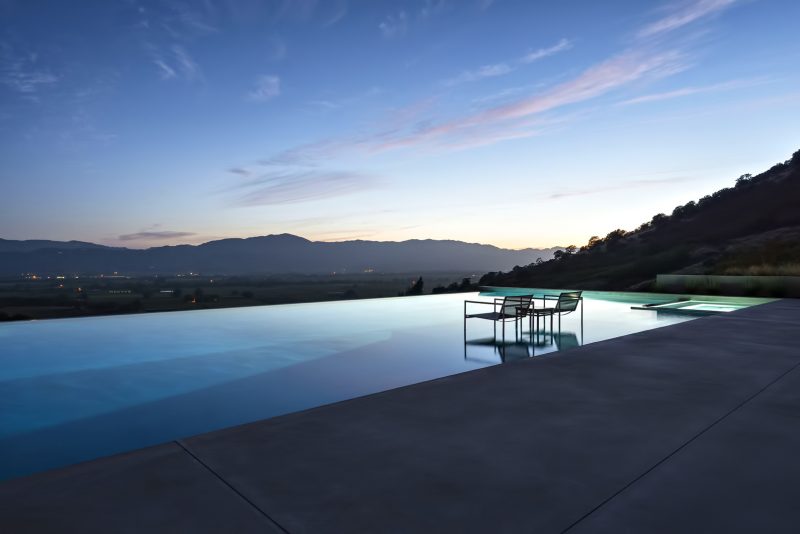 The adjacent guesthouse features one bedroom, one bath, living and dining room, kitchenette, outdoor shower and pool bathroom with sweeping views of Napa Valley. Also located on the estate grounds are a separate guest retreat with one bedroom, one bath, a living room, full kitchen and family room. A well-sited infinity pool creates a quintessential sense of reflection and spatial extension, mirroring the dramatic skies and sweeping vistas over the Napa Valley. This truly glorious estate revels in the serenity of its place.