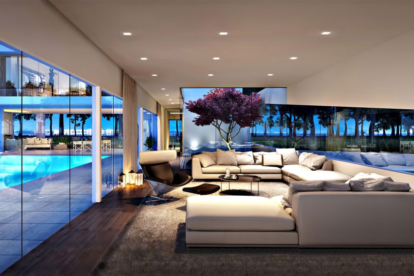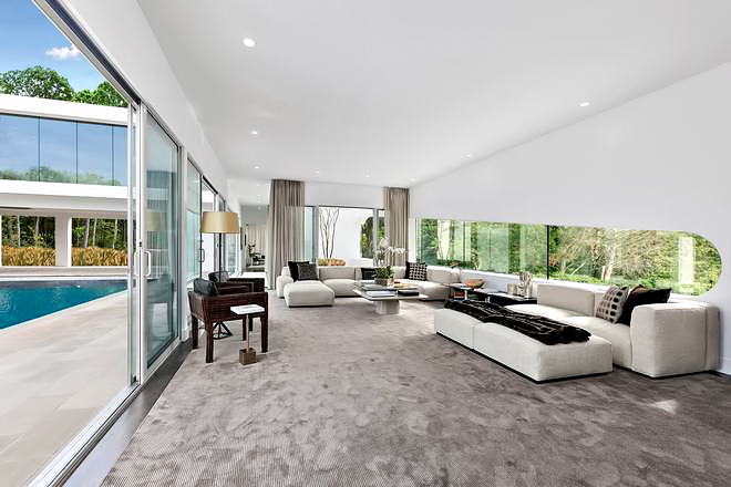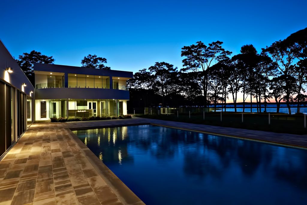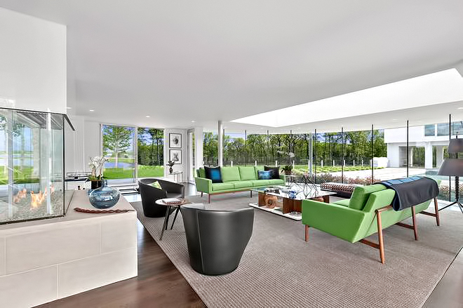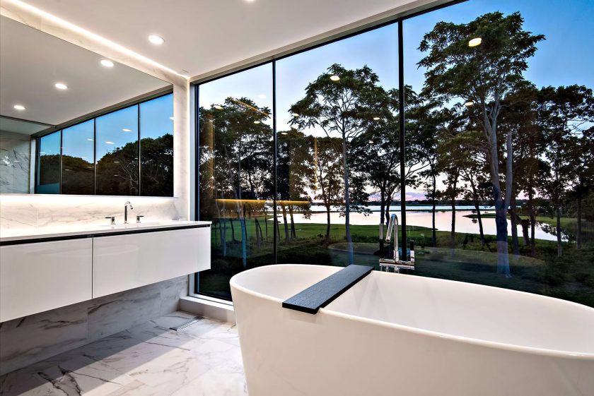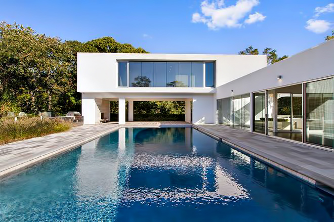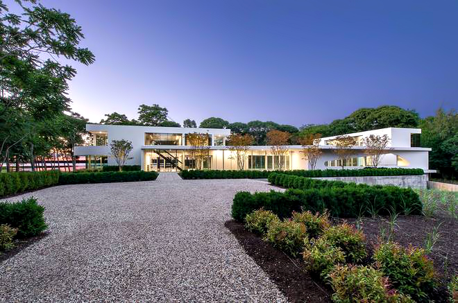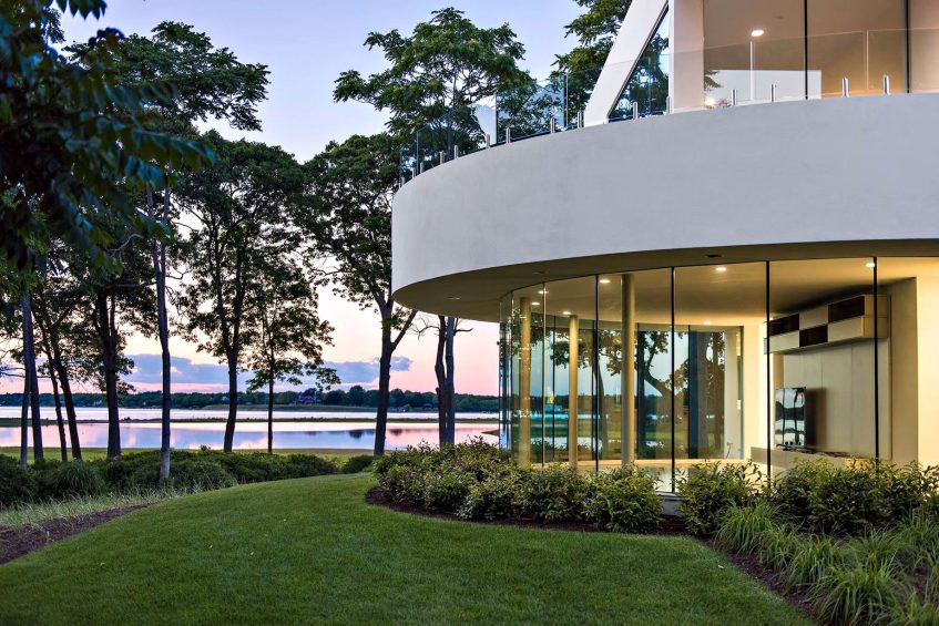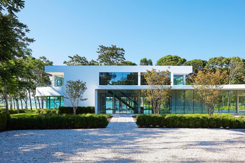 Visually stunning, yet elegantly simple in design, this North Haven luxury waterfront residence is a masterful elucidation of clean modernist architecture that brings together indoor and outdoor spaces with overlapping forms to create a casual element of luxury within the serenity of its panoramic location. Through a feat of inspired engineering, the structures seem to float above the landscape, while over 500 linear feet of glass frame the beauty, tranquility and openness of the waterfront.