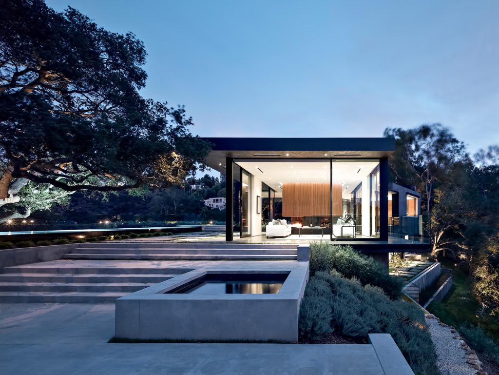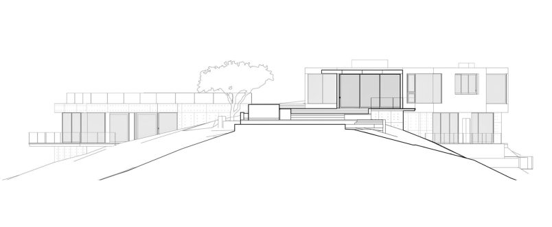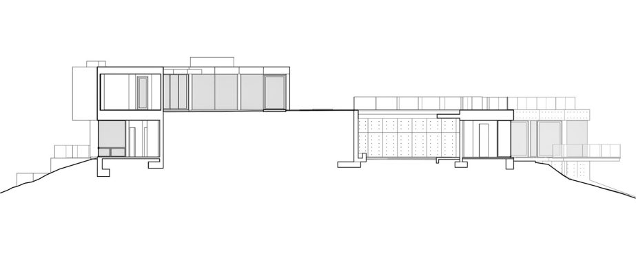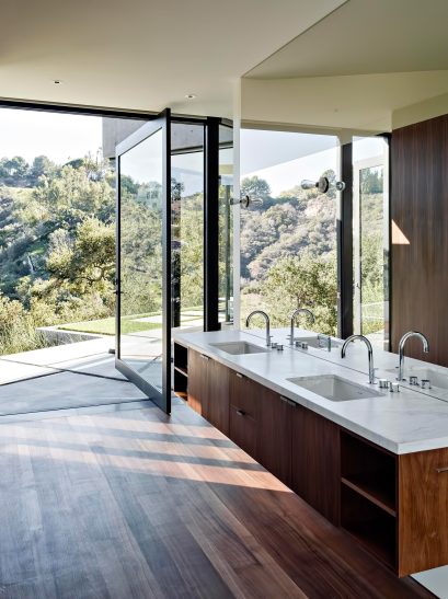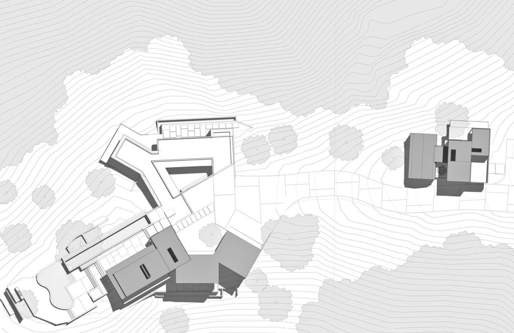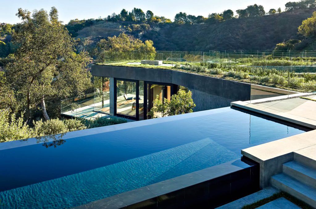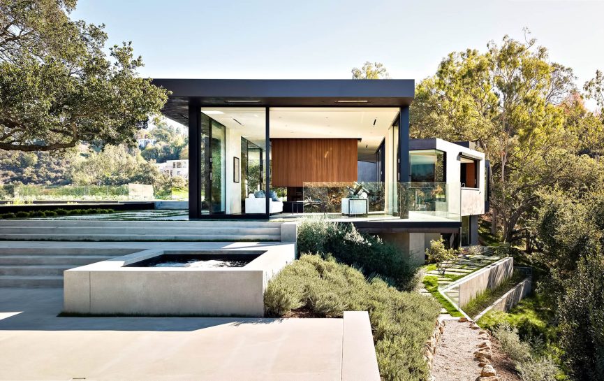 Sublimely processional and tactical, the Oak Pass residence is an architectural masterpiece that invites a walk through to be fully appreciated. Sitting atop a 3.5-acre Beverly Hills ridge with panoramic canyon views this two-home compound was sited to take advantage of the views without the house becoming a central visual focus.