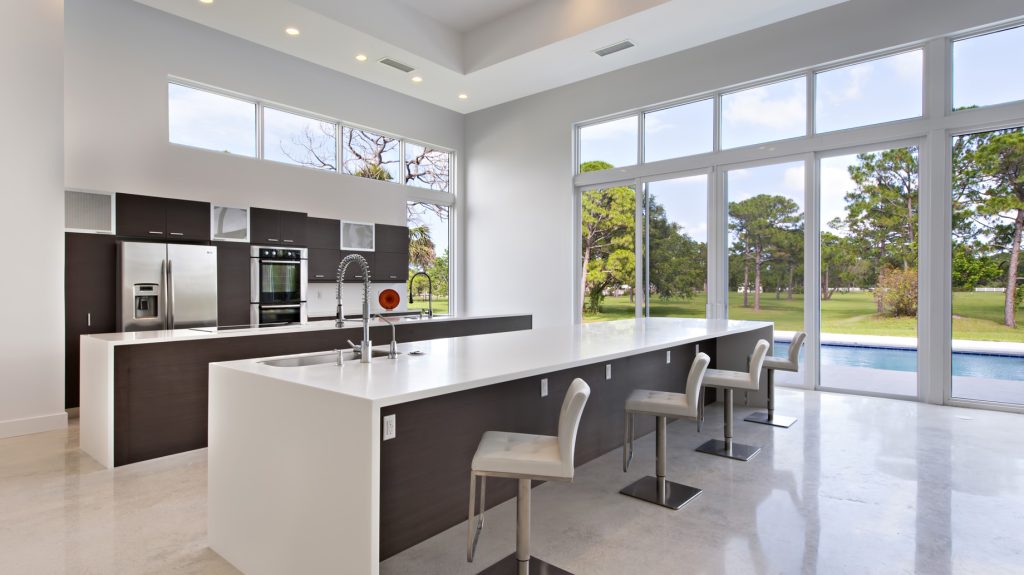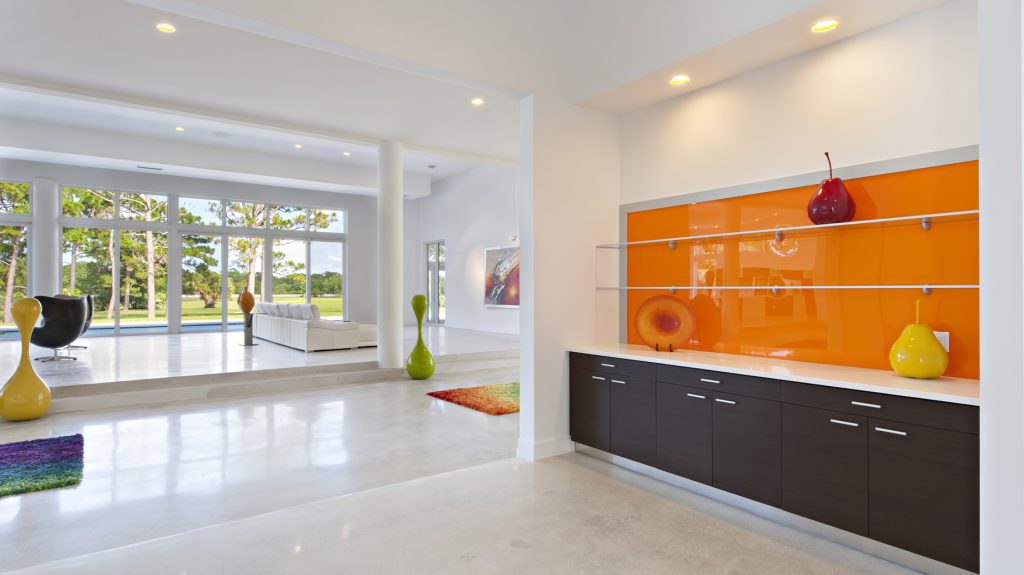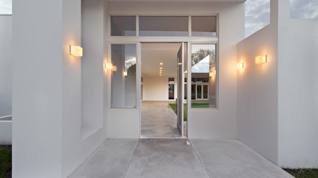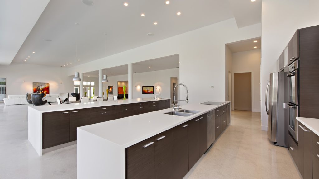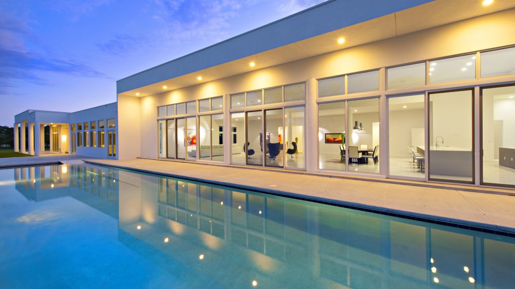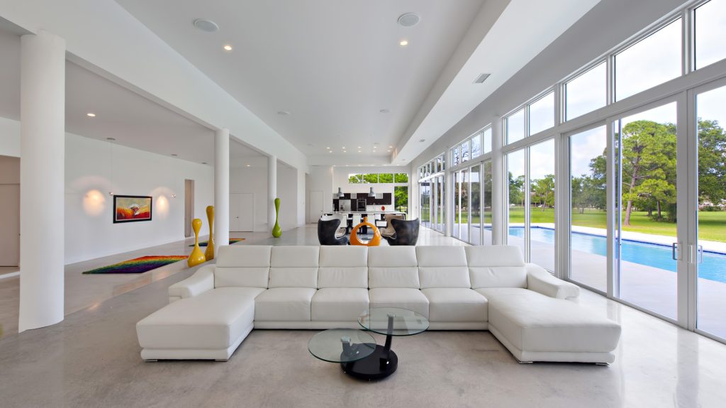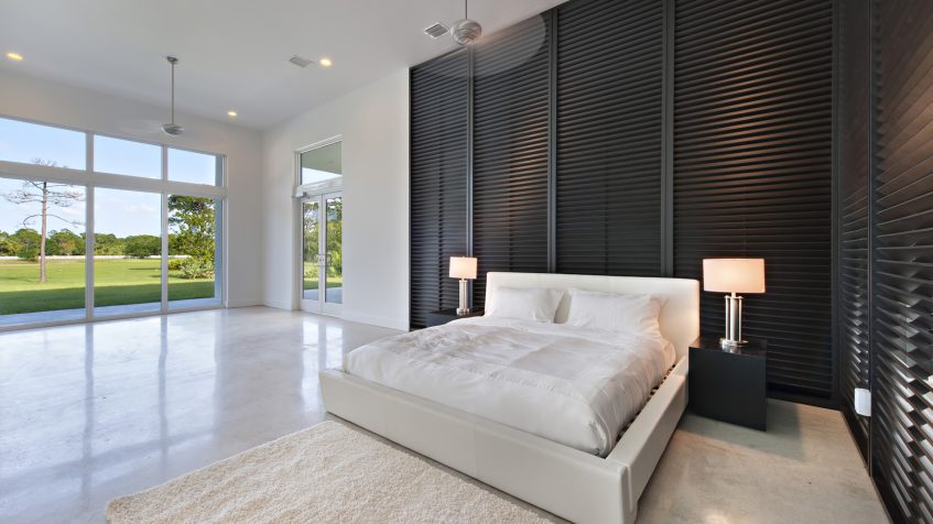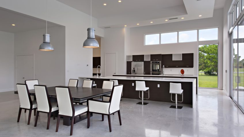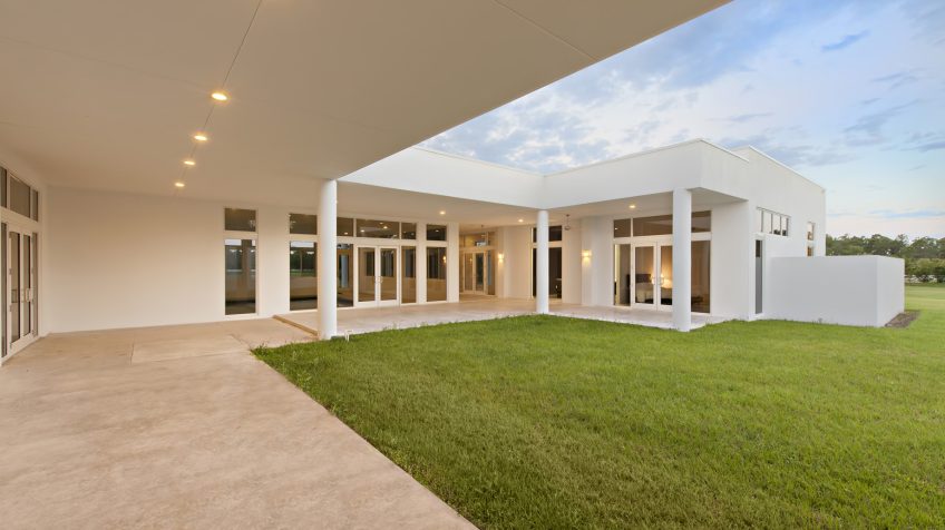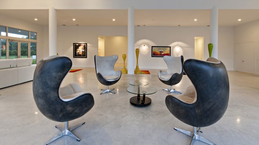 Situated on 20 private acres within the Ranch Estates section of the Ranch Colony development in Jupiter, Florida, the Palace Residence was inspired by the designs of Mies van der Rohe, with a characteristically modern design encompassing large bright open spaces and soaring ceiling.