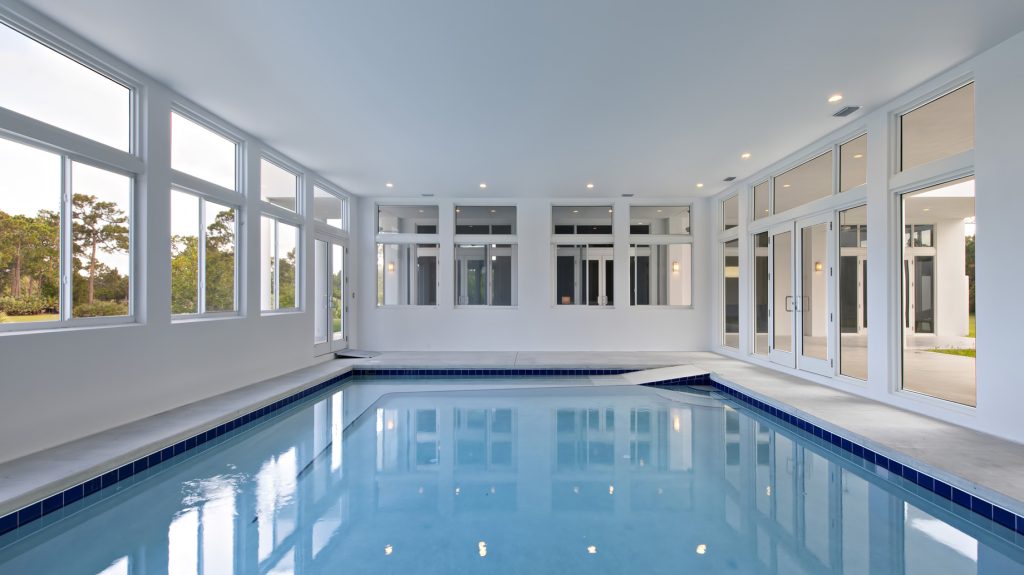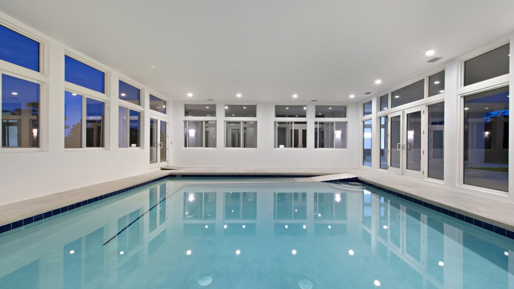 Built on a palatial scale for entertaining and leisure, floor-to-ceiling windows in the grand salon overlook an outdoor pool that stretches an impressive 80 feet in length outside. In addition, the property also boasts a fully enclosed 1,400 sq. ft. air-conditioned indoor poolroom and a separate structural pod housing the master suite for the ultimate in privacy.
