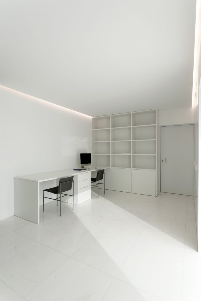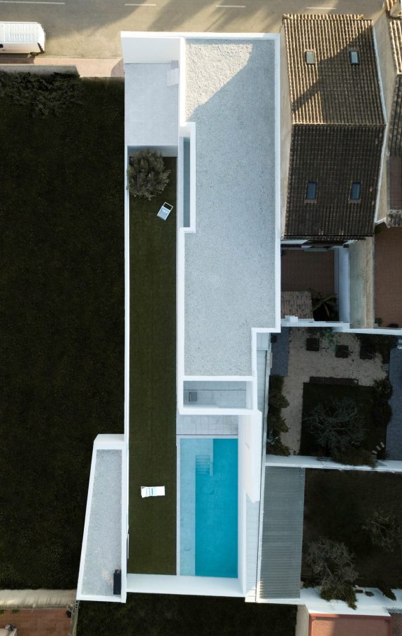 Central to the design ethos is the concept of connectivity with nature and privacy. The ground floor unfolds as a fluid, open space that effortlessly extends into a lush garden and tranquil pool area, capitalizing on Valencia’s favorable climate. Here, auxiliary facilities like a gymnasium and storage units elegantly define the perimeter, complementing the main living areas and enhancing spatial fluidity. Above, the private quarters are meticulously arranged to ensure intimacy, with strategically opaque fenestration maintaining a serene interior ambiance. This deliberate separation of public and private spaces underscores the architects’ commitment to both functionality and aesthetic continuity.