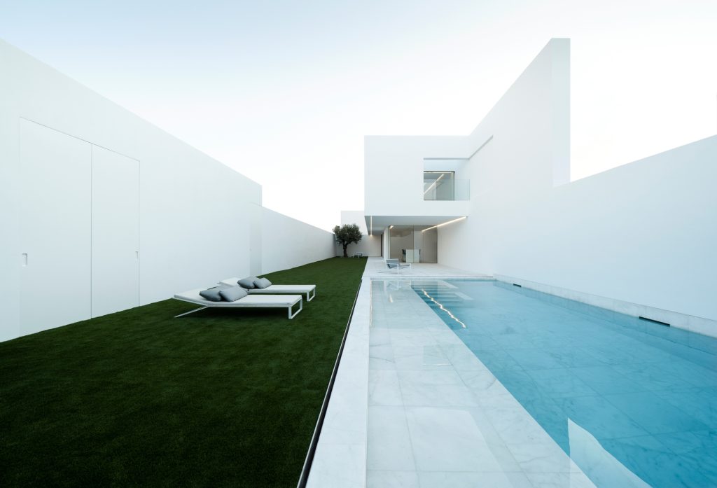 The Pati Blau House, designed by Fran Silvestre Arquitectos, draws inspiration from traditional local farmhouses while incorporating a contemporary minimal design.