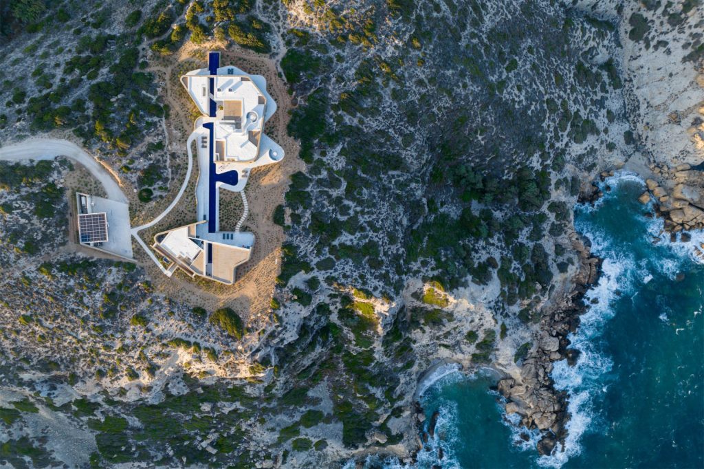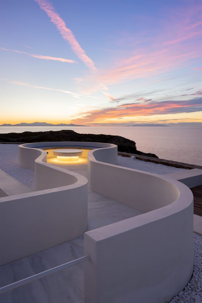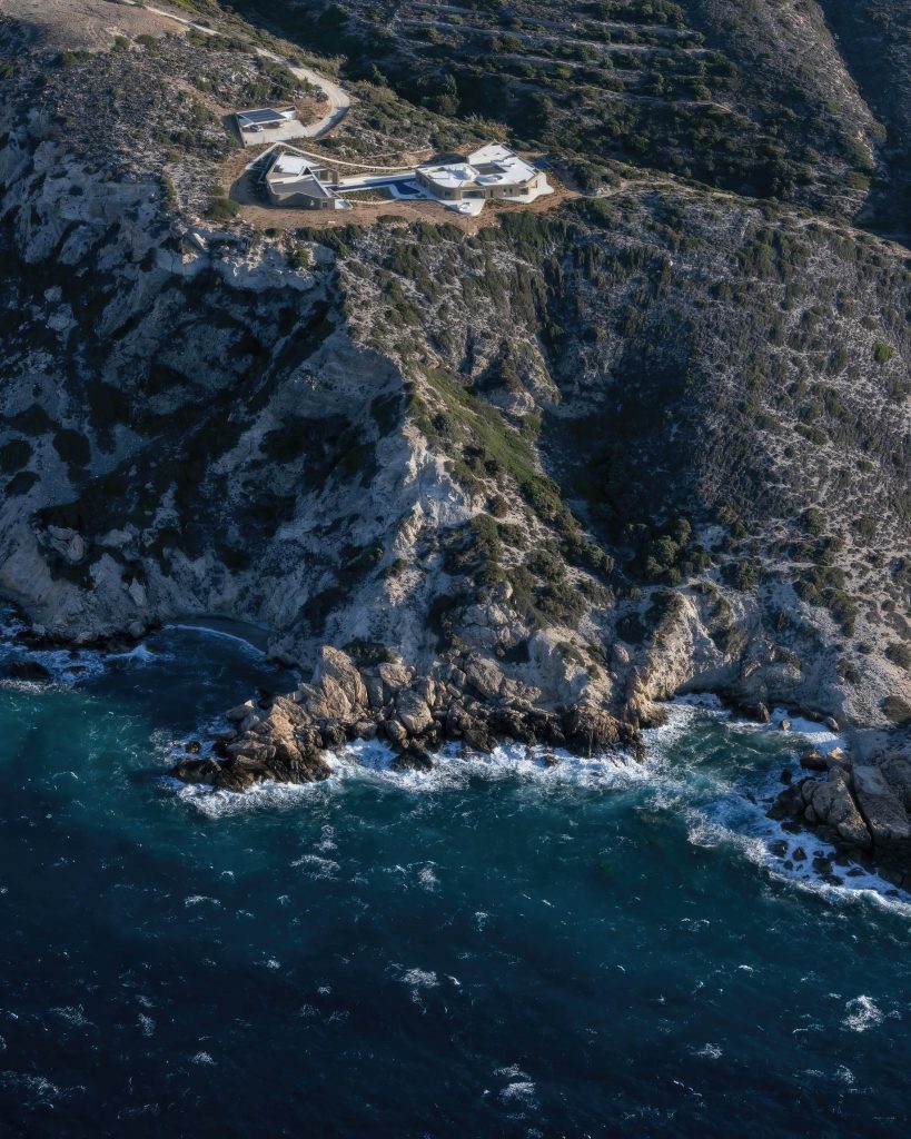 The Peninsula Estate on the western coast of Antiparos, Greece, is a masterpiece of modern island architecture by the renowned Japanese firm Atelier Bow-Wow. The project began in 2006 when Iasson Tsakonas, founder and Managing Director of Oliaros, acquired the land, and in 2008, he selected Atelier Bow-Wowโs design, envisioning it as his future family holiday home. Set against the rugged, untouched terrain of the Cycladic island, the design captures the natural beauty of the Aegean horizon, offering stunning views of the sea and its iconic sunsets. A 75-meter waterline, flowing through indoor and outdoor spaces, connects whitewashed volumes with a fluid stone wall. Its material palette, featuring tinos and pentelikon marble, blue ceramics, and white-colored cement, merges contemporary design with traditional craftsmanship, allowing the home to seamlessly blend into the surrounding landscape.