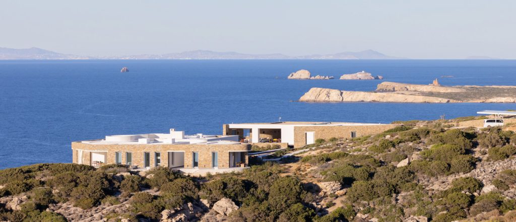 Inside, the interiors offer a minimalist canvas for owner Iasson Tsakonasโ extensive art collection, reflecting his global perspective and refined taste. Tsakonas, the founder of Oliaros, is an avid art collector whose passion grew during his work in real estate across Azerbaijan and Greece. His collection of contemporary art, ceramics, and heritage Azeri rugs blends effortlessly into the space, creating a home that feels personal yet timeless. Drawing inspiration from traditional Japanese gardens and the work of Greek architect Dimitris Pikionis, the propertyโs design showcases an elegant fusion of Japanese and Greek architectural influences, embodying the timeless sophistication that defines modern Greek island living.