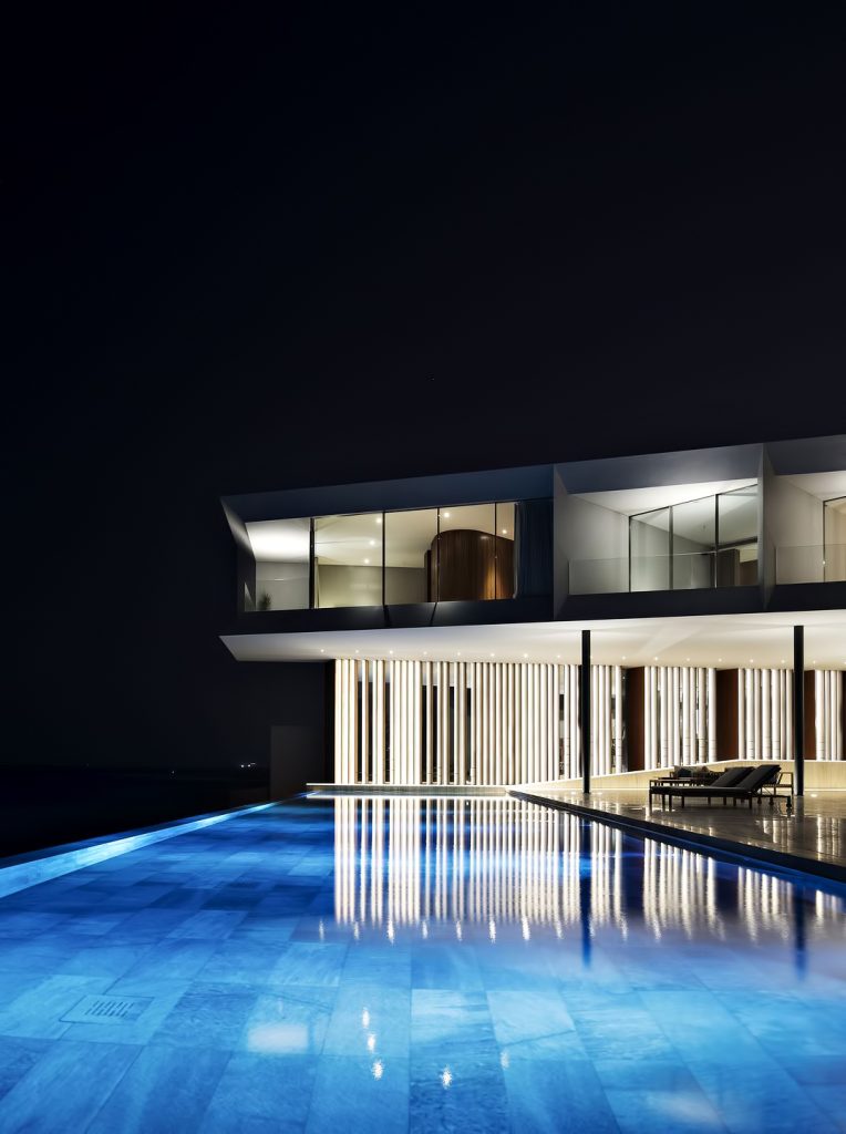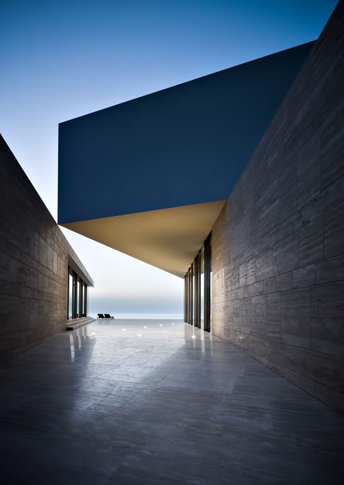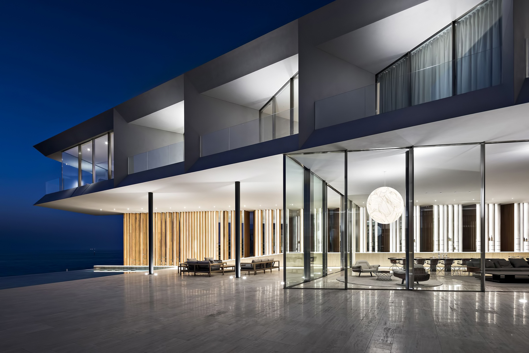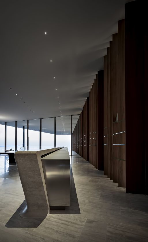 Spacious lounge, dining and pool areas together with spa, gym and event facilities were required to host individuals, groups and special events such as formal occasions and live concerts. The result is a seamless and theatrical amalgamation of all the above; a sequence of spaces overlooking both sea and inspiring outdoor spaces, large enough to comfortably accommodate small to medium sized groups in a remarkable and unforgettable setting.