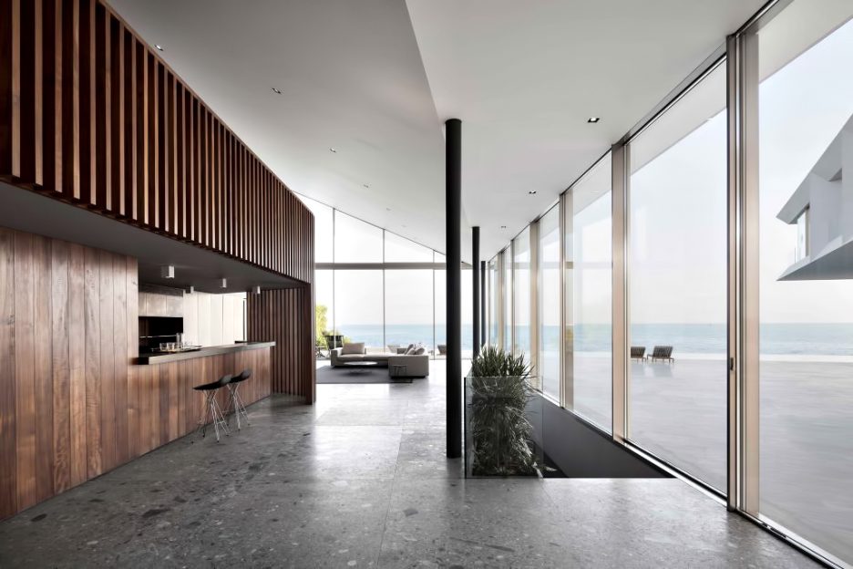 Designed to immerse up to 200 guests into a transcendent experience, away from the generic local context while providing refuge from the unremitting demands of modern living, the building sits on reclaimed land and a hundred piles: its spartan composition of travertine, concrete, wood and glass sewn seamlessly together in a story of bespoke details and balanced proportions.