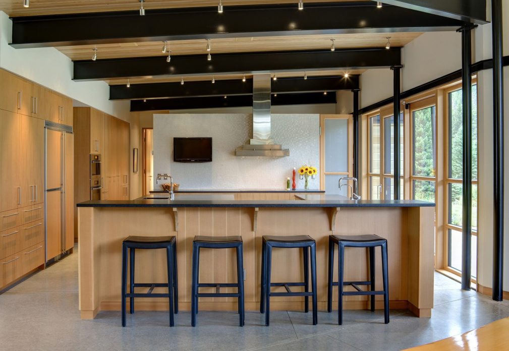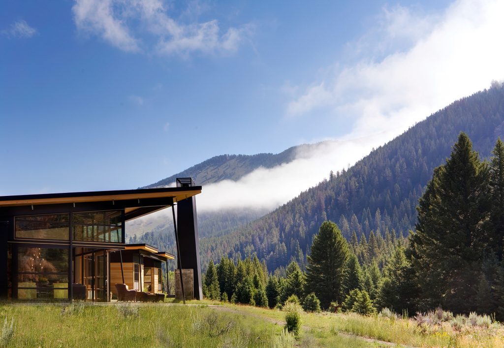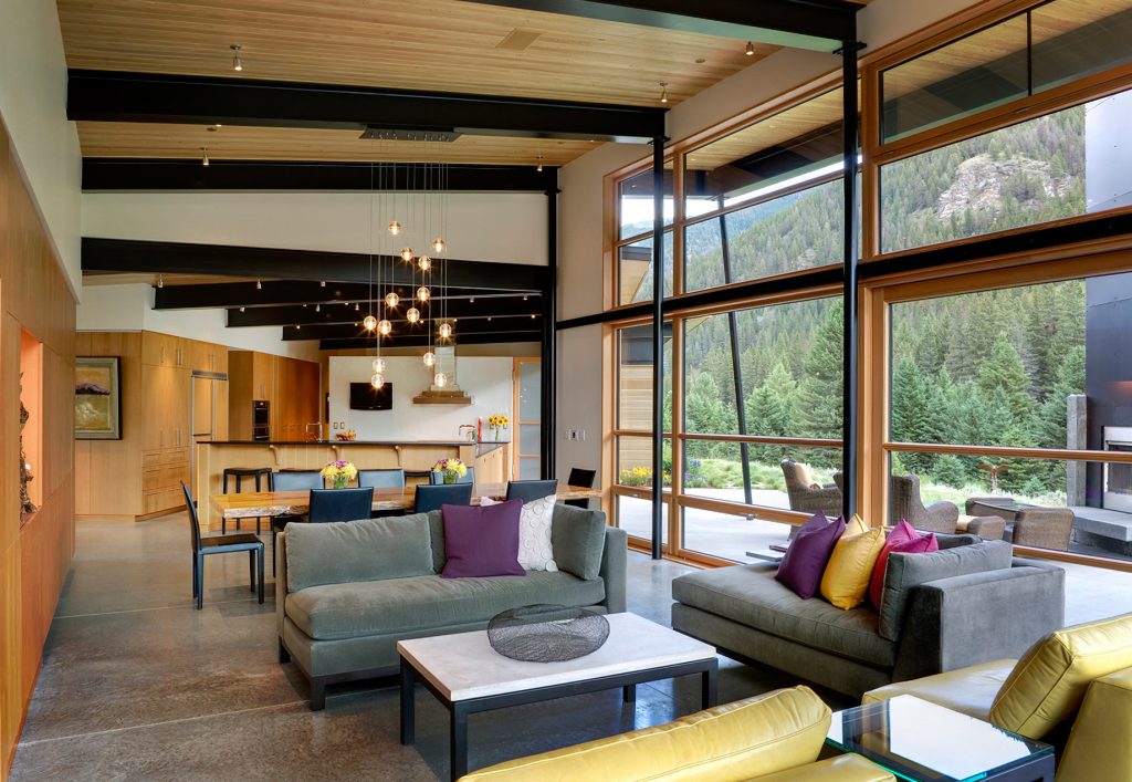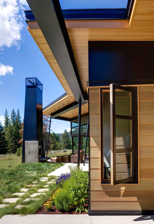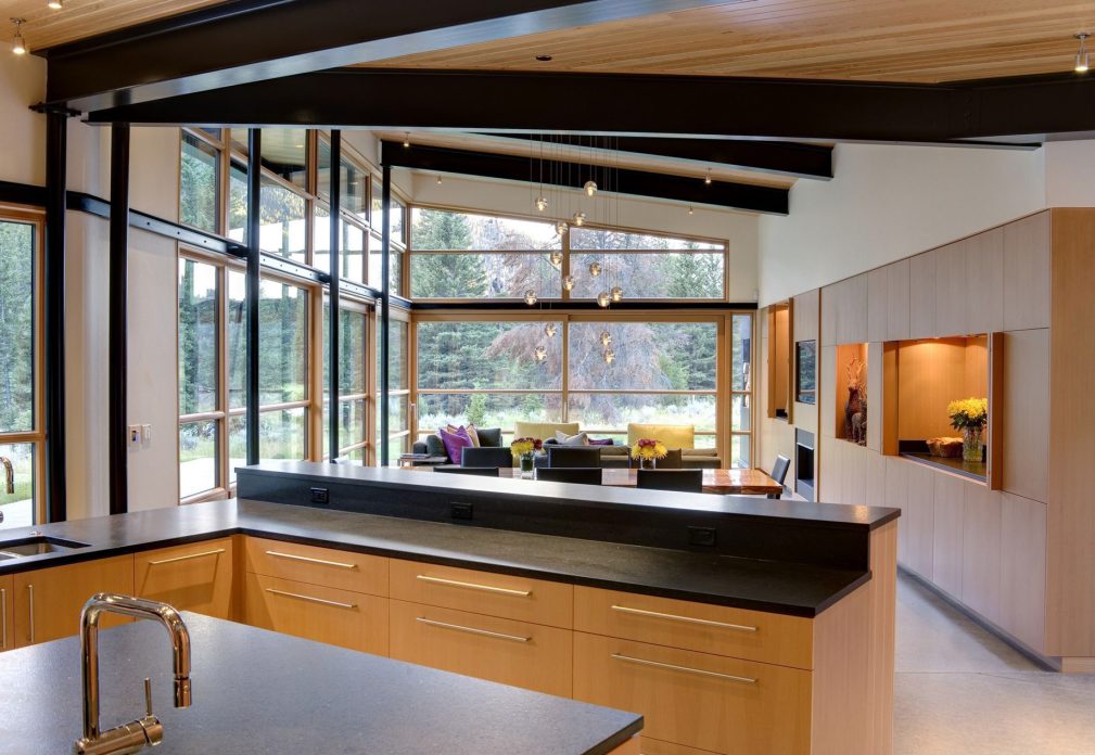 The River Bank House stands as a testament to the harmonious fusion of architectural ingenuity and natural splendor set along the scenic Gallatin River just beyond the reaches of Big Sky, Montana. Crafted with a discerning eye for both aesthetics and functionality, this residence is a serene sanctuary cultivating an inviting and relaxed ambiance with an open design that seamlessly intertwines with the surrounding outdoors. The house’s orientation prioritizes an unobstructed panorama of the river, meticulously balancing the embrace of breathtaking views with strategic solar considerations. Strategically positioned to harness solar heat during the winter months and shielded by a sprawling roof, the living room’s expansive glass windows offer a picturesque vantage point while ensuring a comfortable interior temperature throughout the seasons. Bolstered by geothermal heat pumps and top-tier insulation, the River Bank House emerges as an exemplar of sustainable living in the face of Montana’s rigorous climate.