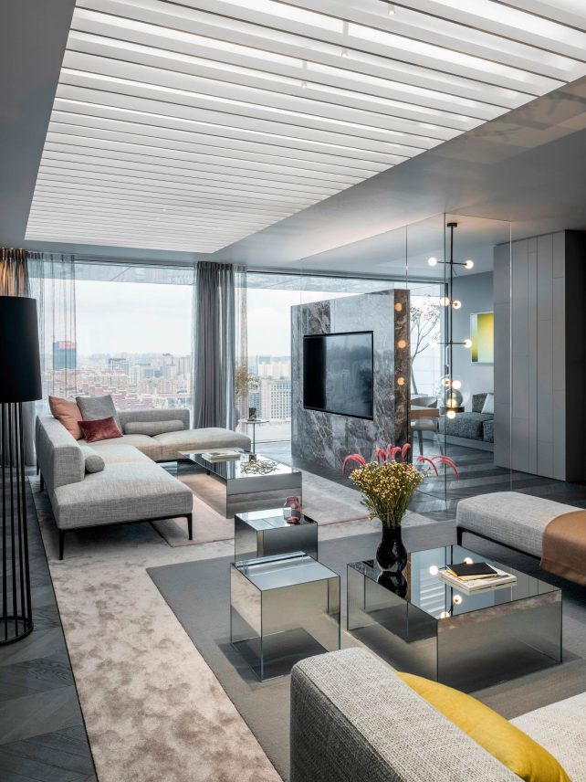 Located in the Schwarzwald apartment towers project in Putuo, one of Shanghai’s ten inner-city boroughs, designer Ippolito Fleitz Group – Identity Architects has developed interior designs and furnishing concepts for two apartments in house 11. The firm used a modern vocabulary of contemporary design integrated into the elegant and tranquil spatial quality to masterfully turn a 250-square-metre apartment into a metropolitan sanctuary with breath-taking views of Shanghai’s skyline.