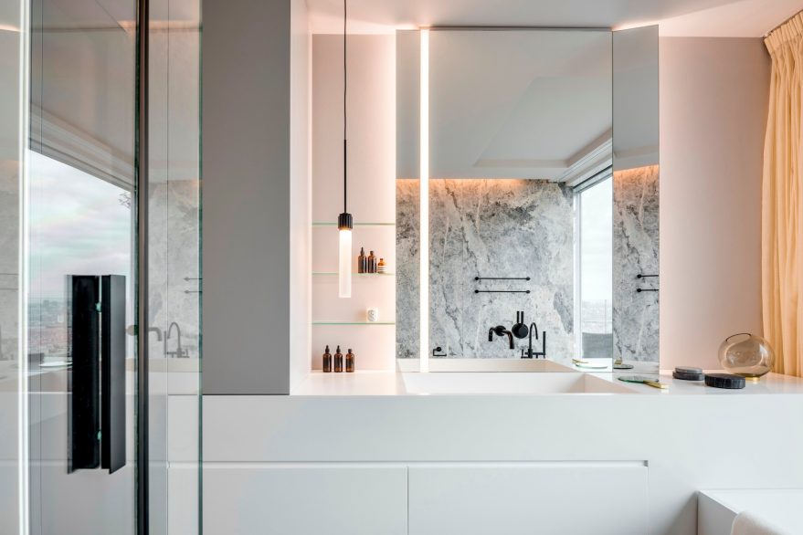 True to its name, the central theme of the “Shades of Grey” show apartment focusses on a full range of grey nuances. With its elegant and meditative calm, the apartment would perfectly suit a globetrotter’s desires after a long and tiring trip. Layers and interactions of premium materials, fascinating textures and high-contrast surfaces organically create an interior that is a place of tranquillity and relaxation.