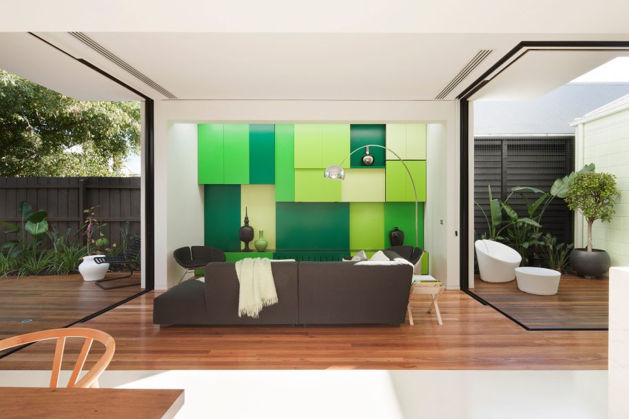 Shakin’ Stevens is not only about a colour theme but the experience of whatโs beyond it. Beyond the renovation of a heritage property, the project wanted to not necessarily increase floor area but to increase amenity. To make spaces feel bigger, more functional, to be light filled, and to visually extend and borrow from within and beyond the site.