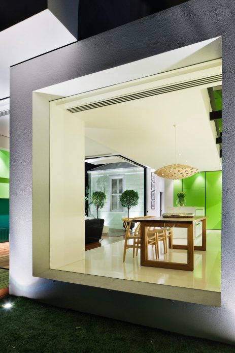 The conceptual drive for the interior of this house is largely in response to a brief which crystallised into a need to be connected with โgreenโ space. This home was built to totally embrace its greenness. Colour was a vital strategy in adding glow and clarity to this expression on a number of levels.