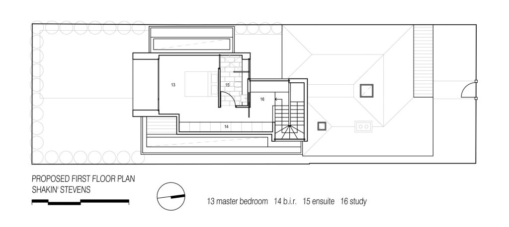 Conceptually beyond the front door, there are no doors; the newer space is about flow and continuity where delineation of space is soft and less finite than expected from the street. In a clear formal idea, the rear composes 3 extruded white cubes that look essentially like they have been let go, landing like dice randomly on top of each other next to a Victorian โmonopolyโ house. The 3 cubes, as with the existing villa, are composed so as to be immediately deciphered internally or externally and in clear programmatic zones all house different functions. The cubes which are opened at their ends (or sides where required) are utilised as devices to orchestrate views to green elements within the structure and to greenery within or beyond the site.
