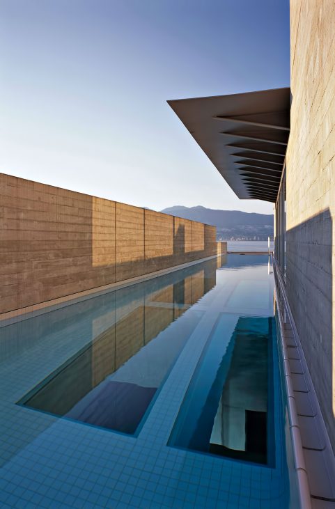Located on a narrow strip of waterfront property on the south shore of English Bay, the Shaw House is an avant-garde luxury residence with breathtaking ocean views that stretch across the water to encompass the skyline of downtown Vancouver and beyond to the majesty of the spectacular North Shore mountains. Architecturally significant, this sensational residence is renowned for its unique entrance below a terraced pool that runs along the entire west side of the house.