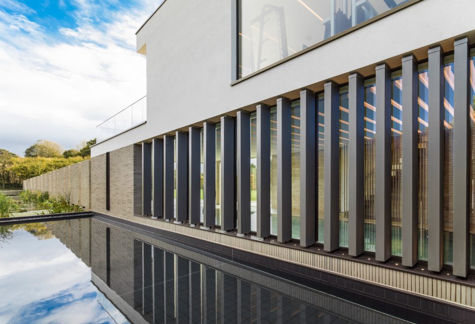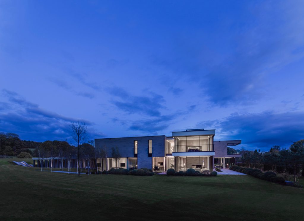 Shropshire Residence, by Gregory Phillips Architects, is set within a picturesque 20-acre rural landscape. The ultra-modern residence features a winding driveway that enhances its connection to the surrounding environment while embracing the traditional elements of English country estates.