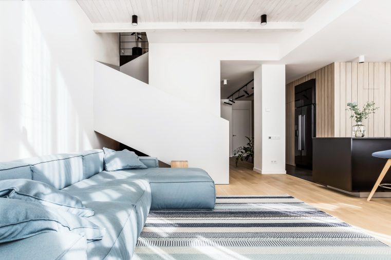 ย Lighting in the interior also plays an important role. Spotlights, hidden ice lights, floor lamps and sconces create a different atmosphere in the rooms. A few words need to be said about furniture: all embedded furniture and the kitchen are designed individually for this project, taking into account customer preferences and functional needs. The main secret of this project is a sense of limits and control of proportions, which give a feeling of a perfect balance of space, light and volumes.