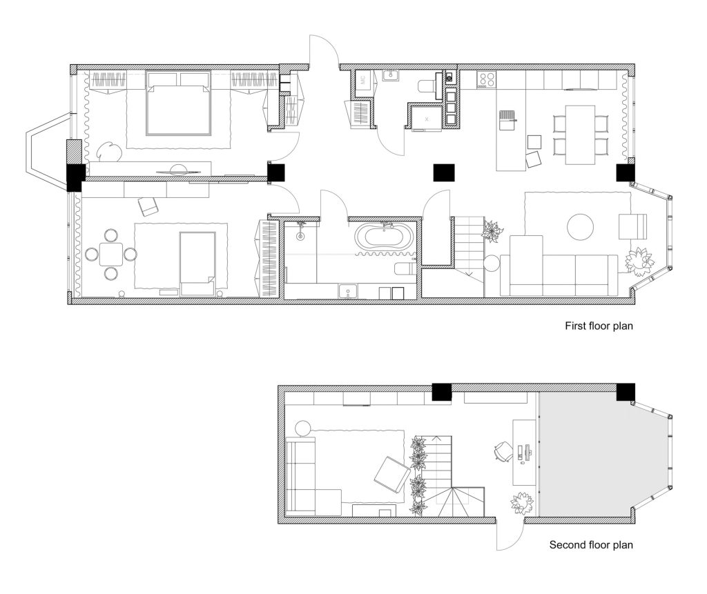 The apartment of 140 square meters is located in the residential complex Sonyachna Brama in Kyiv. On the first floor, there is a spacious hall with natural light, bedrooms, a bathroom, a guest bathroom, a technical room. There is also an open space in the living area, a kitchen, a dining room and a living room with a laconic staircase leading to the second floor. On the second level, there is an office,ย an art studio and a dressing room.