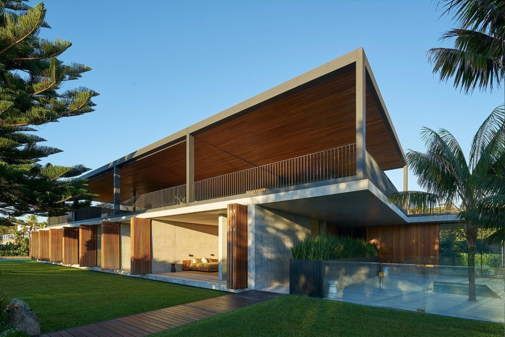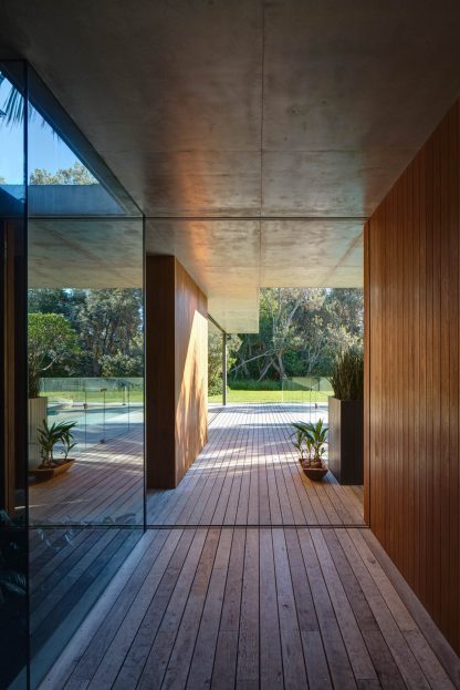 Sitting within the dunes of the South Coast of NSW, Sunrise House embraces the horizon of the Pacific Ocean. Robust yet finely articulated, the home is arranged as a collection of positive and negative spaces, opening up completely to the immediate landscape, or shutting down as the coastal weather turns. A simple planning arrangement provides a large home with an efficient program, and light and ventilation apertures follow the linear functionality of the home.