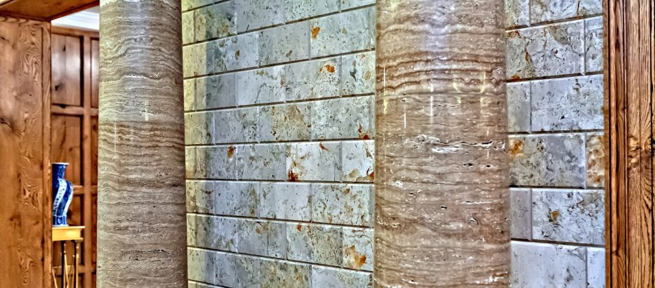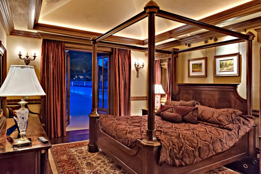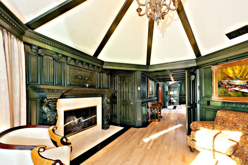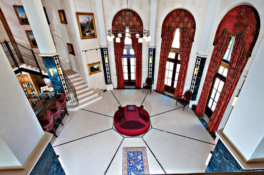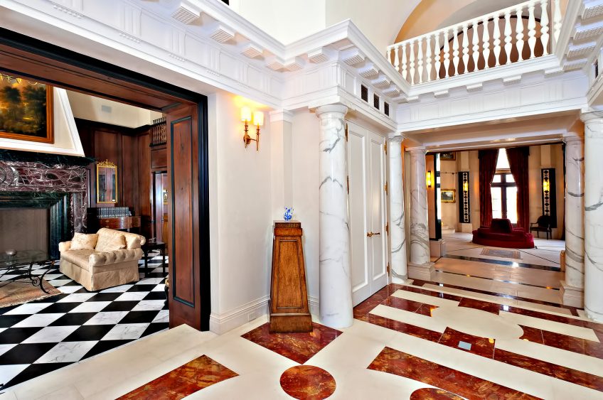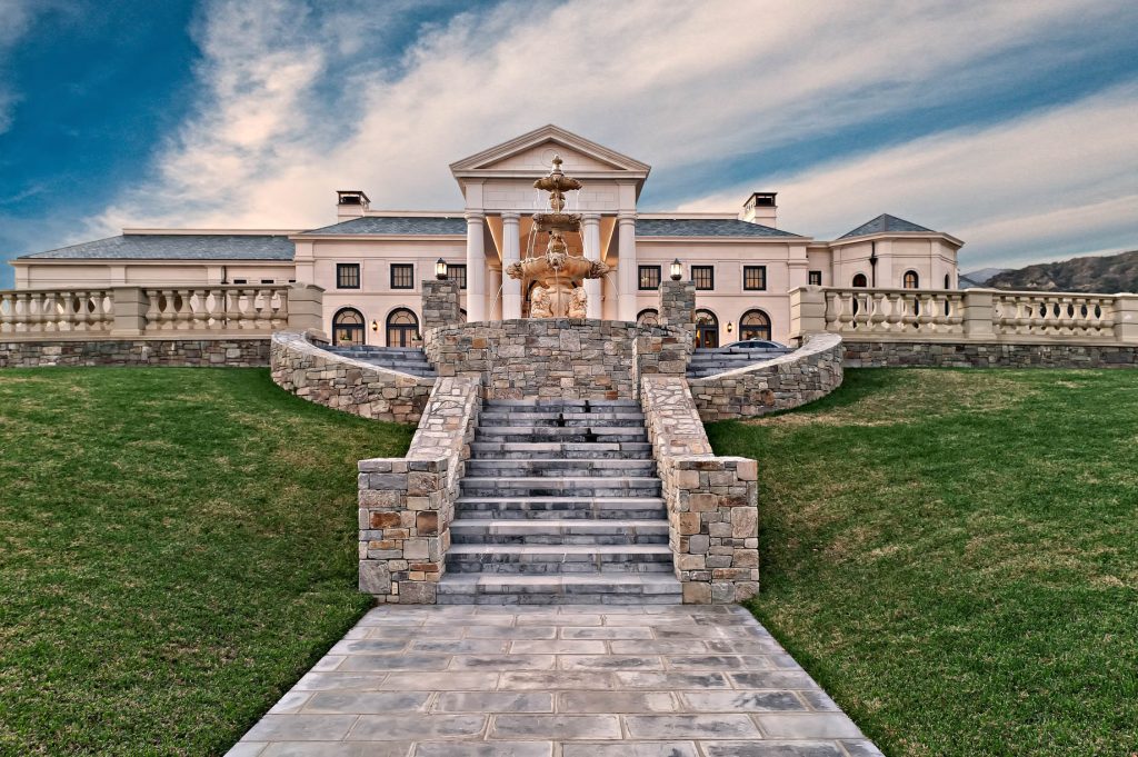The Bradbury Estate consisting of 7 bedrooms and 10 baths, is made almost entirely of French Limestone exteriors and flooring and features 40 ft. vaulted ceilings, 6 large fireplaces, domes with hand painted frescos, Venetian plaster masterpieces throughout, and additional exquisite details too numerous to list.