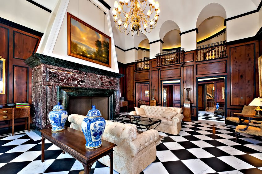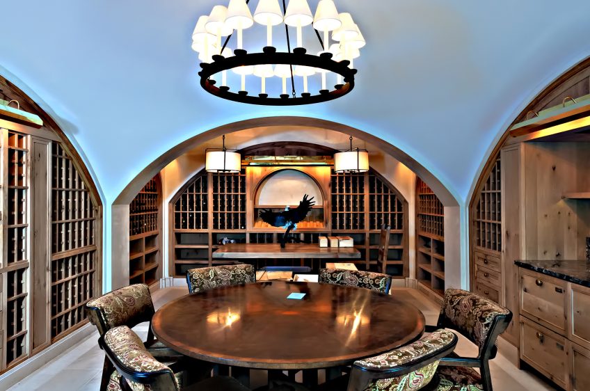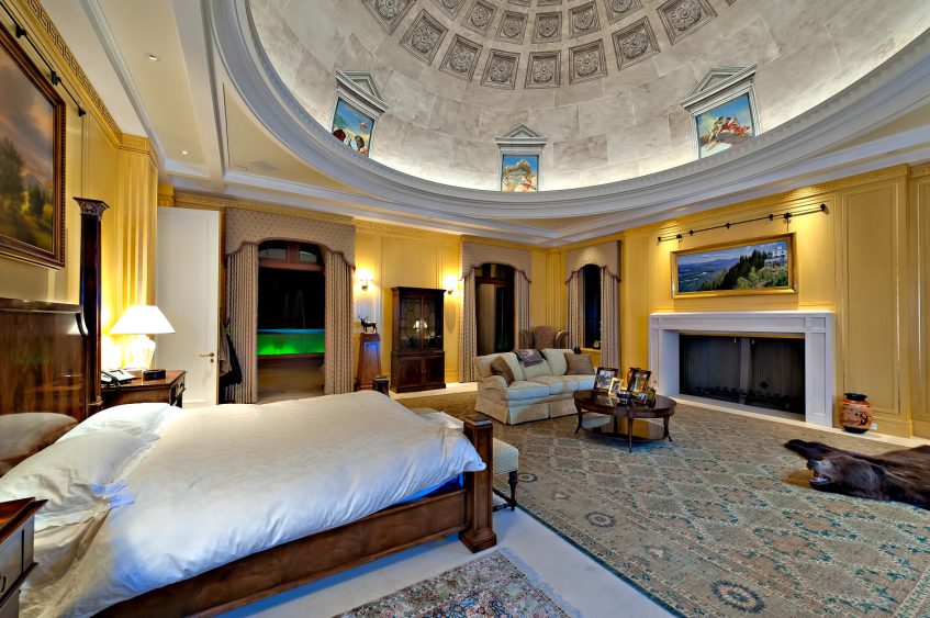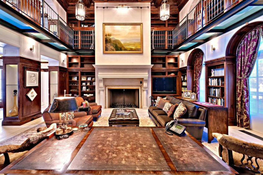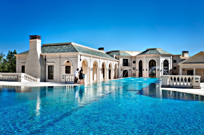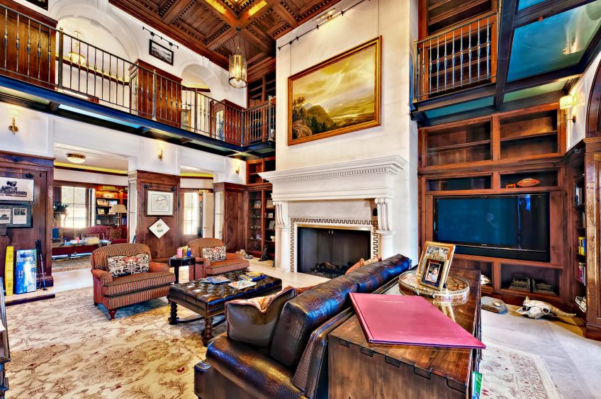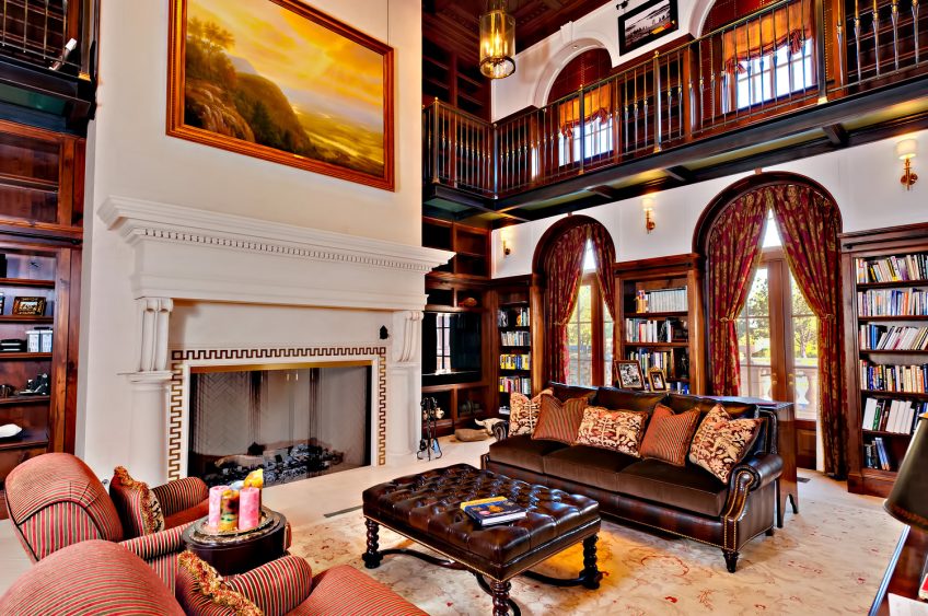 The Main House is approximately 30,000 square feet plus 3,000 square feet of Loggias, with 2 Master Suites, a 2 story Library, Chef’s Kitchen with pizza oven, a walk-in butlerβs pantry, both walk-in refrigerator and freezer. Additional features in the Main House include a large 3D Theater, 2,000-bottle Wine Cellar, an Oak Paneled Elevator as well as a leather-paneled poker room with dark walnut floors which includes a bar, and built-in humidor.