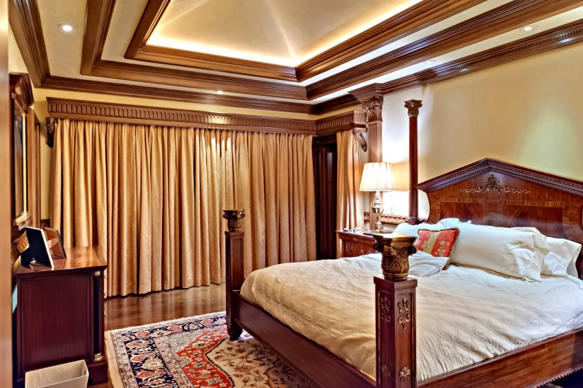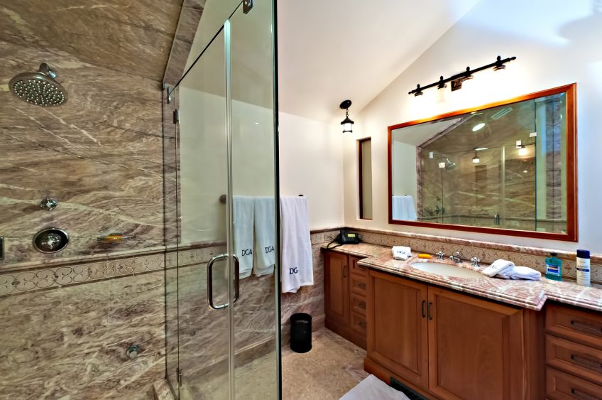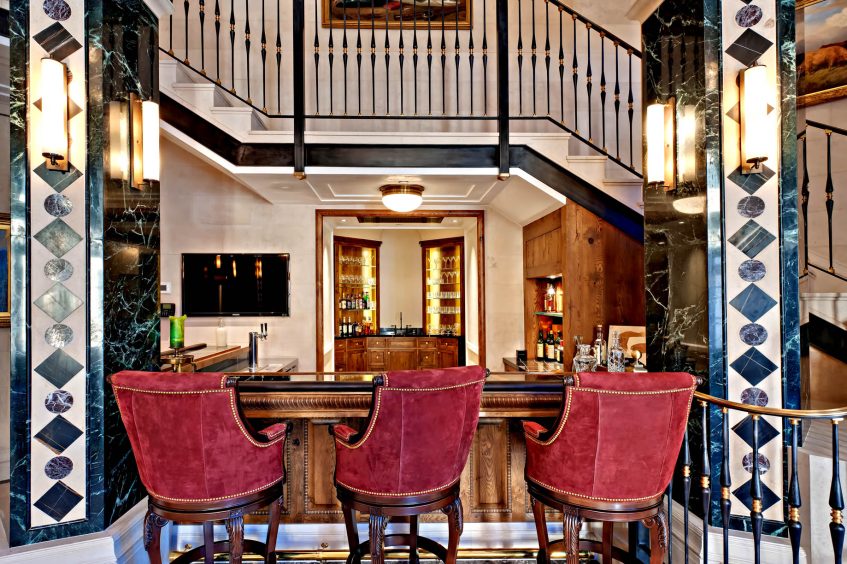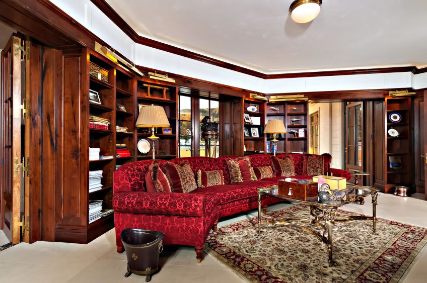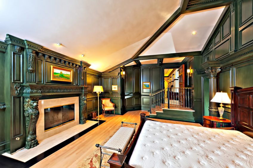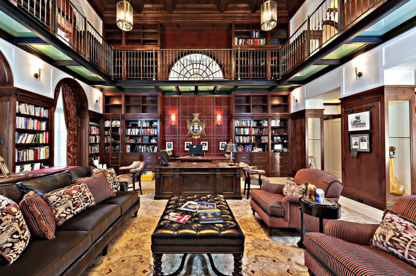 The Main House is approximately 30,000 square feet plus 3,000 square feet of Loggias, with 2 Master Suites, a 2 story Library, Chef’s Kitchen with pizza oven, a walk-in butlerβs pantry, both walk-in refrigerator and freezer. Additional features in the Main House include a large 3D Theater, 2,000-bottle Wine Cellar, an Oak Paneled Elevator as well as a leather-paneled poker room with dark walnut floors which includes a bar, and built-in humidor.