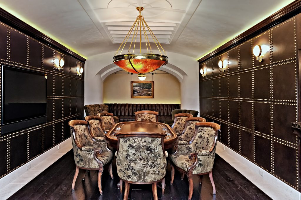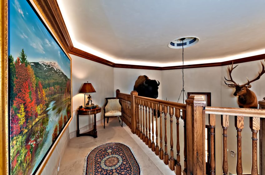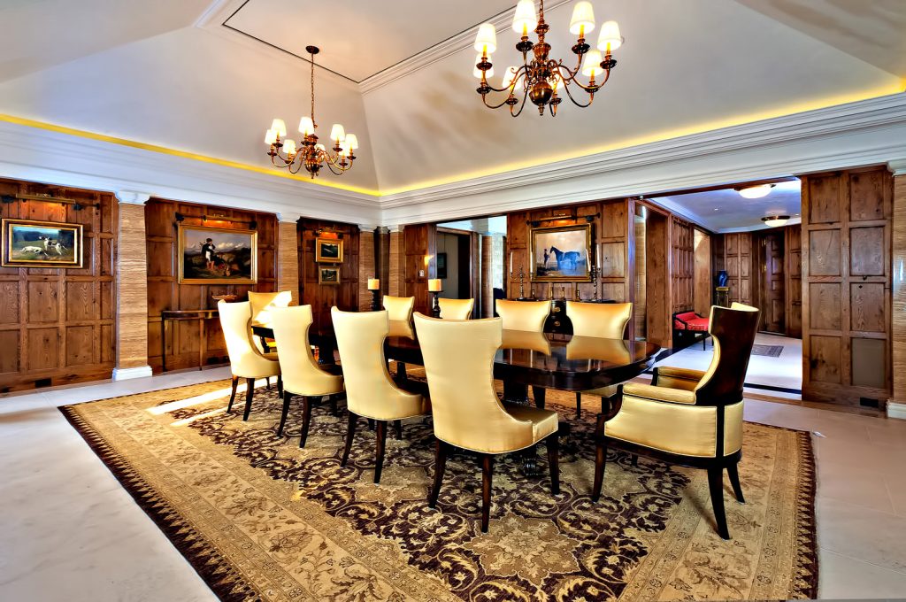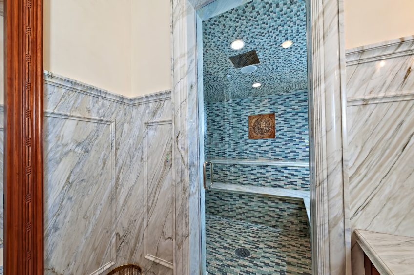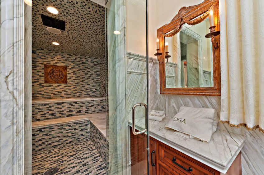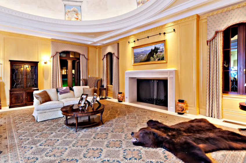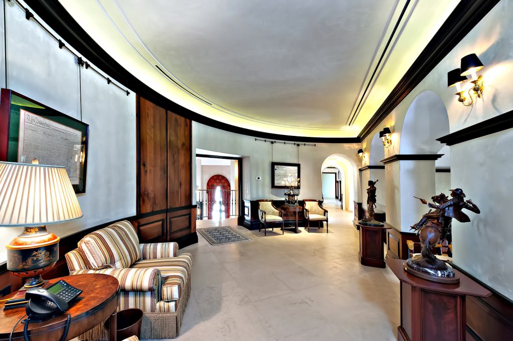 The 5,716 sq. ft. Pool House comes complete with an expansive kitchen capable of hosting the largest of gatherings, a state of the art Cybex gym with free weights and aerobic machines, a massage room, and a subterranean EPA certified 25 yard shooting range, gun storage room with 2 large safes and suitable security, along with an air conditioned general utility room. The main seating room opens up to the pool deck and features a large wood-burning fireplace and unique hand painted Italian Renaissance inspired Venetian plaster dome above.