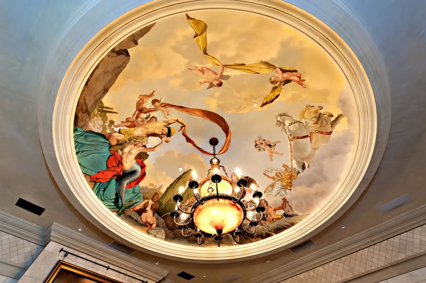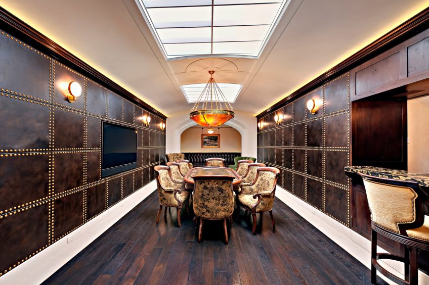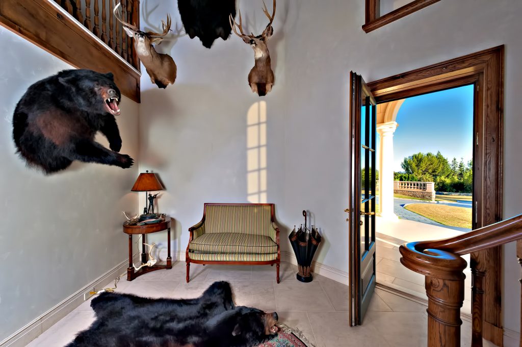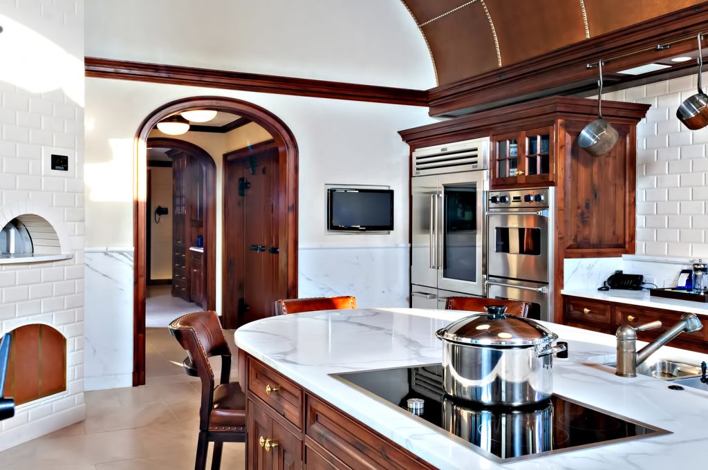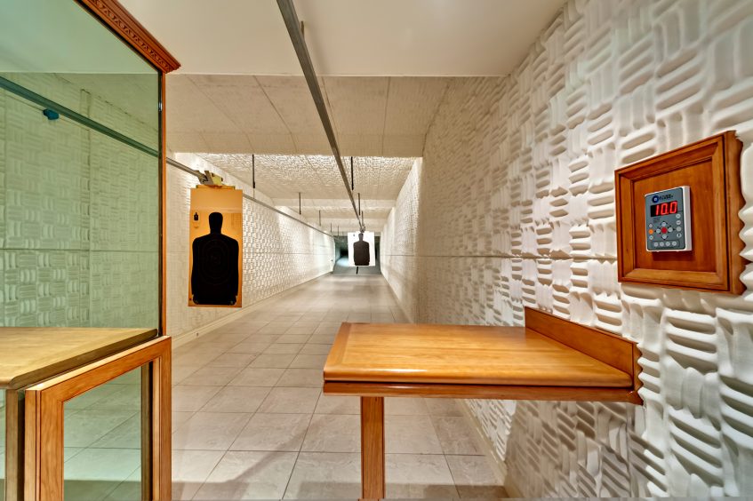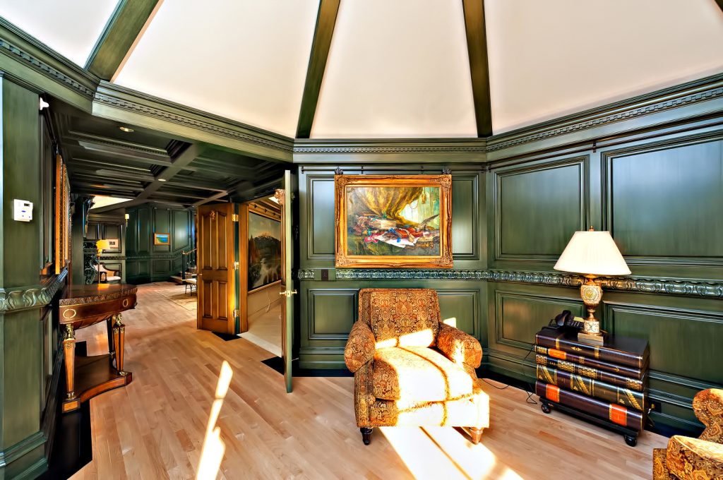 The 5,716 sq. ft. Pool House comes complete with an expansive kitchen capable of hosting the largest of gatherings, a state of the art Cybex gym with free weights and aerobic machines, a massage room, and a subterranean EPA certified 25 yard shooting range, gun storage room with 2 large safes and suitable security, along with an air conditioned general utility room. The main seating room opens up to the pool deck and features a large wood-burning fireplace and unique hand painted Italian Renaissance inspired Venetian plaster dome above.