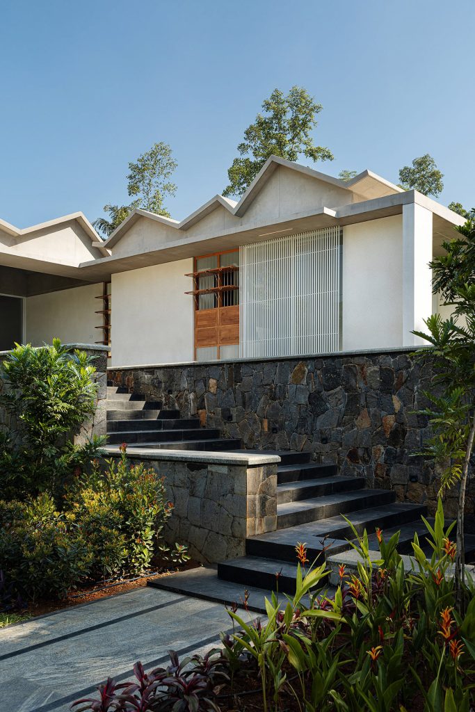 In the lush expanse of a rubber plantation in Poovarany, Kerala, the Crimped Roof House emerges as a striking example of innovative design by LIJO.RENY.architects. Completed in 2024, this 6,788-square-foot single-story home redefines tropical living by harmonizing contemporary aesthetics with the demands of a hot, humid climate. Its standout feature, an undulating reinforced cement concrete (RCC) roof, sets the tone for the entire structure, influencing both its form and function. The dynamic roofline not only adds sculptural beauty but also facilitates passive cooling, enhancing natural ventilation and lighting while minimizing reliance on artificial climate control.