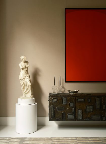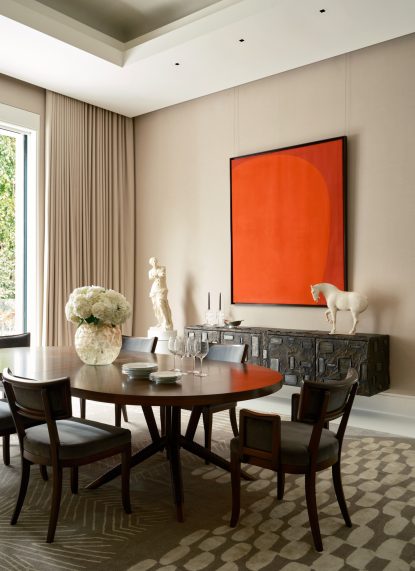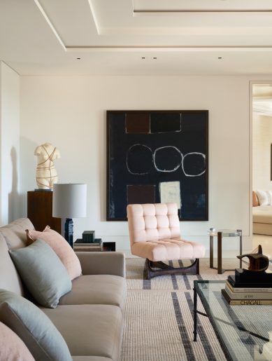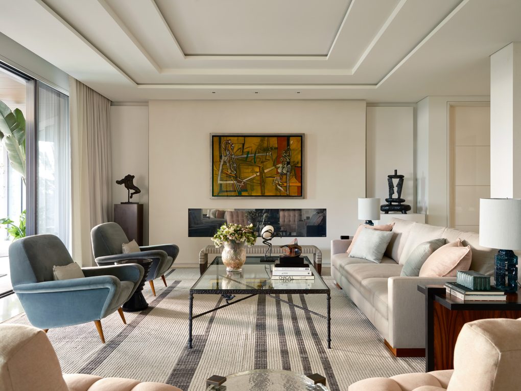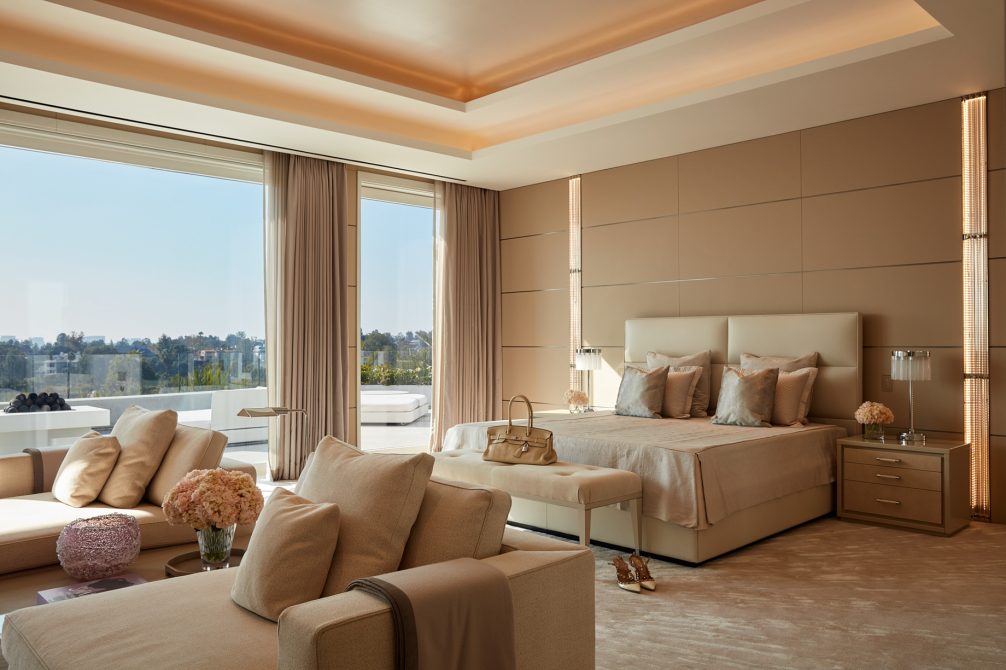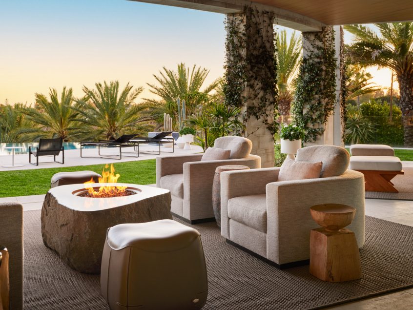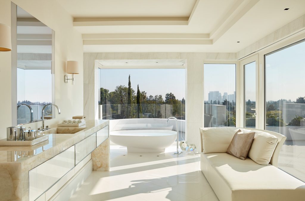 Landry, known as the “king of the megamansion,” approached the rebuild with clean geometry and softened massing to correct the home’s original odd angles and low ceilings. Long curved walls were introduced to guide the flow, while expansive glass elements flood the interiors with California light. The landscape, designed by Robert E. Truskowski, mirrors the home’s sculptural ethos, surrounding the rear terrace and infinity-edge pool with curated pathways and greenery. A long-gated driveway ensures privacy, opening to a dramatic entryway that frames both art and architecture. With its rare blend of iconic design, international collaboration, and luxurious functionality, this home sets a new benchmark for high-end luxury real estate in Beverly Hills.