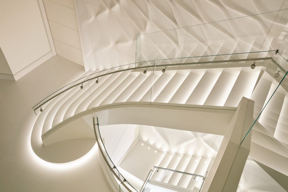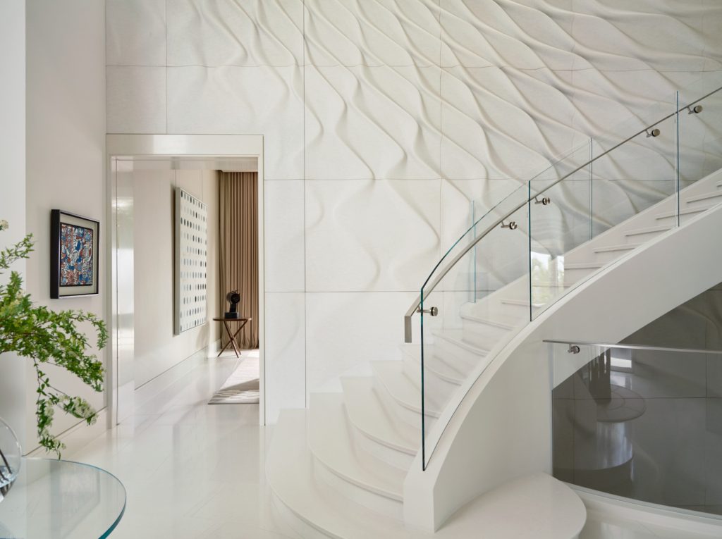 Tucked away on nearly an acre in one of Beverly Hills’ most exclusive enclaves, just two minutes behind the iconic Beverly Hills Hotel, this newly completed architectural estate is a showcase of modern design and global collaboration. Reimagined by AD100 architect Richard Landry of Landry Design Group, the once-Mediterranean hillside property has been stripped to the studs and expanded into a modern contemporary residence with city-to-ocean views. Designed in partnership with Zaha Hadid Architects, and Magni Kalman Design, the home features an open-concept layout with soaring 30-foot ceilings, sliding walls of glass, and multiple terraces that seamlessly connect to the lush outdoors. Anchoring the home is a one-of-a-kind three-storey curved feature wall designed by Zaha Hadid, one of only three in existence, carved in marble and dramatically illuminated by natural skylight above the sculptural staircase.
