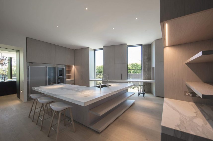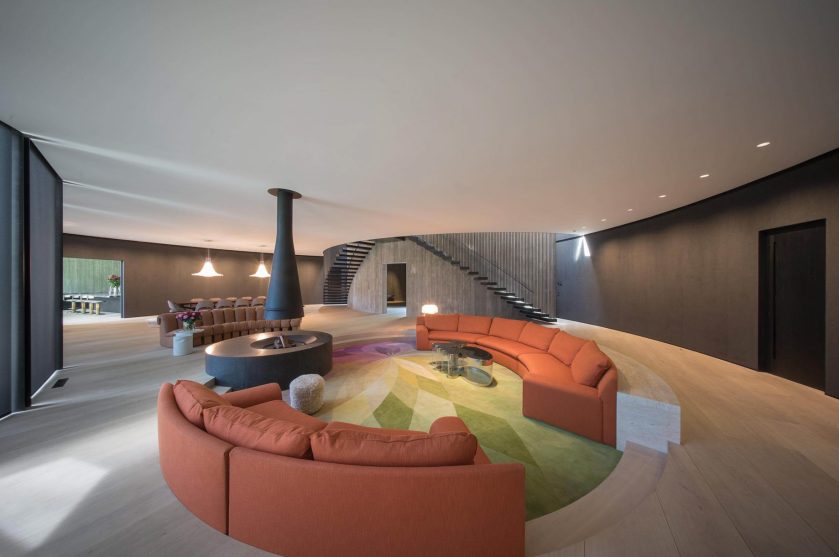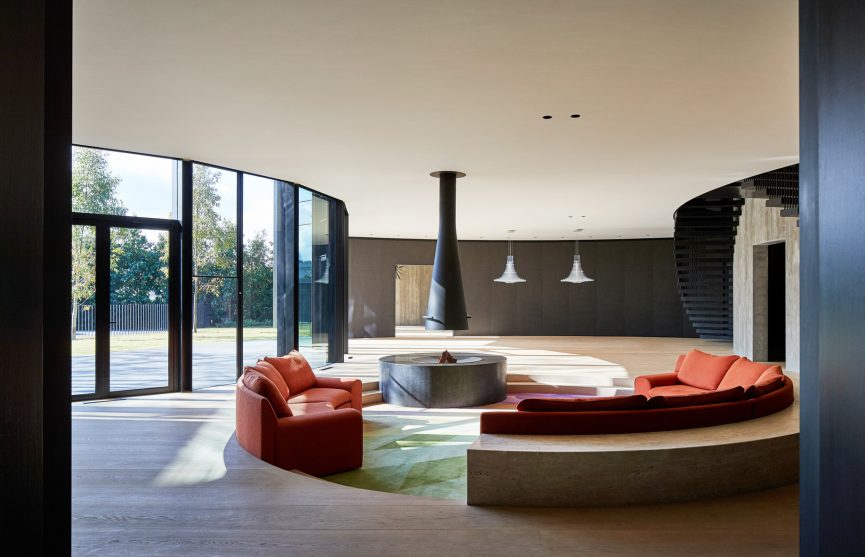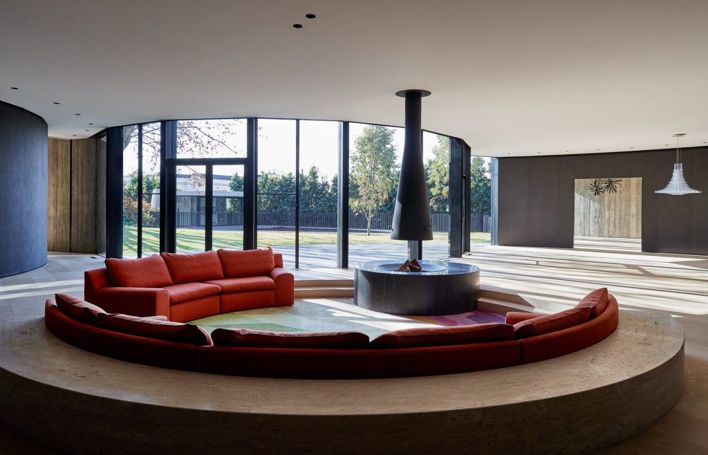 The Towers Road House redefines the boundaries of residential design, standing as a bold expression of modern contemporary Australian architecture in Toorak. Designed by Wood Marsh, this modernist property harmoniously merges sculptural form with functional elegance. Its iconic faรงade features sweeping arcs of raw concrete imprinted with the grain of Oregon timber, creating a textured surface of striking natural beauty. These monumental walls curve around the sloping site, eliminating conventional boundary fencing and extending landscaped gardens to the street, fostering a seamless interplay between public and private realms.
